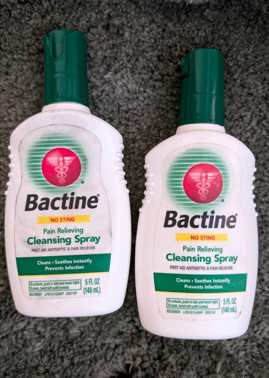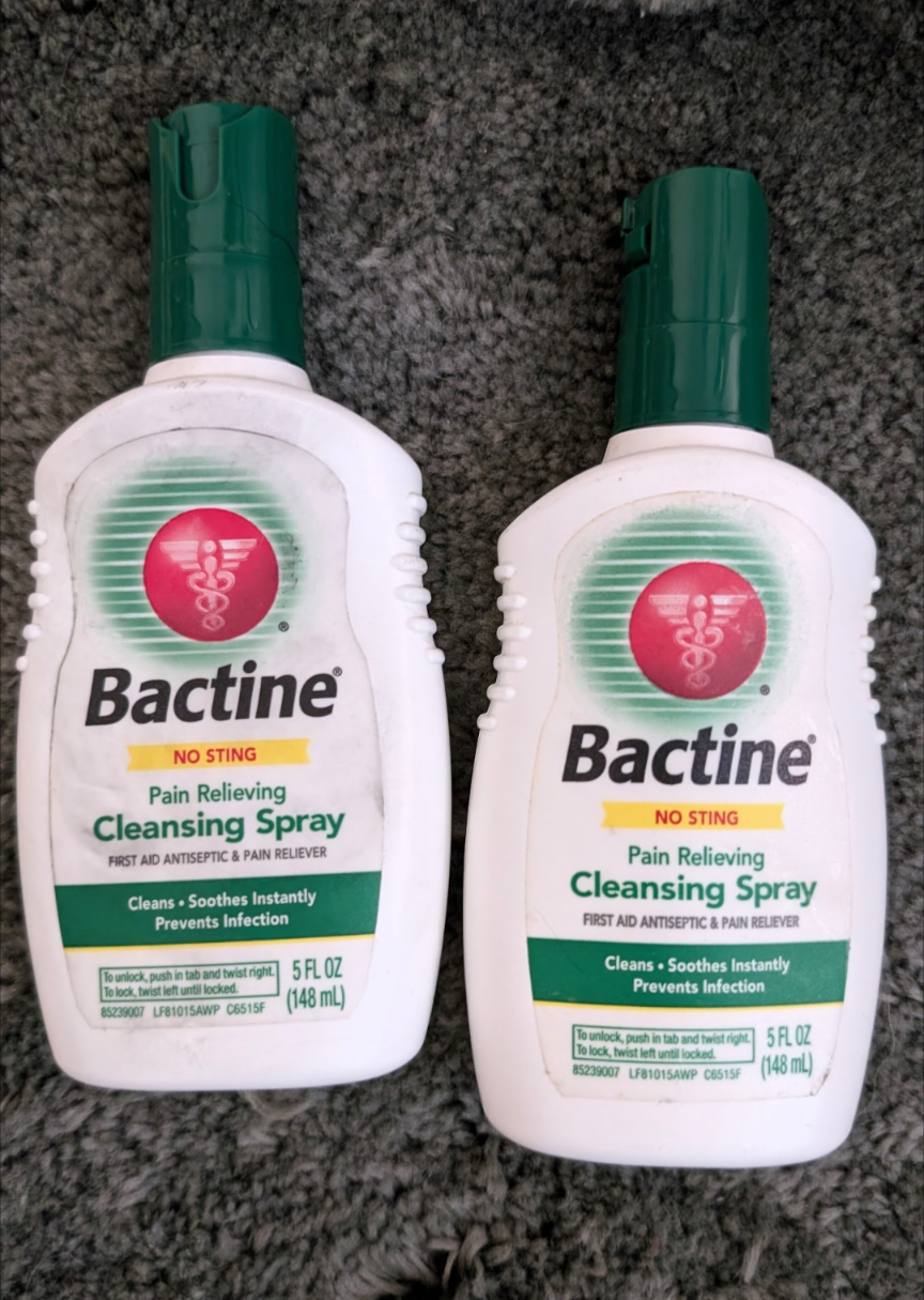 Two bottles of Bactine No Sting Pain Relieving Cleansing Spray. First aid antiseptic and pain reliever. Cleans, soothes instantly, prevents infection. Partially used. From home with dogs. North Center (Chicago) near Damen & Montrose