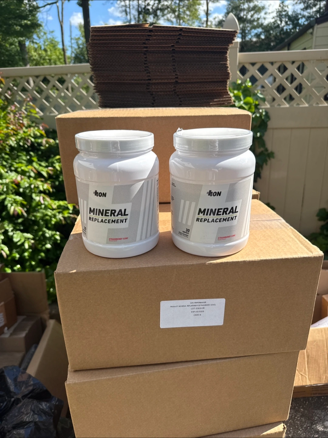 Multiple tubs of Ion Mineral Replacement supplement. Strawberry Kiwi flavor. 30 servings per tub. Bulk purchase, great for resale or personal use. Individual tubs and boxes available.