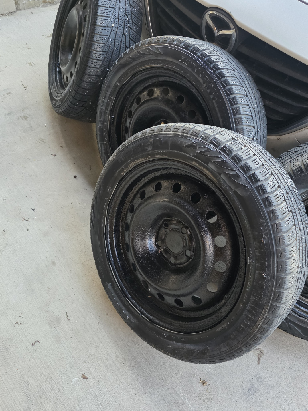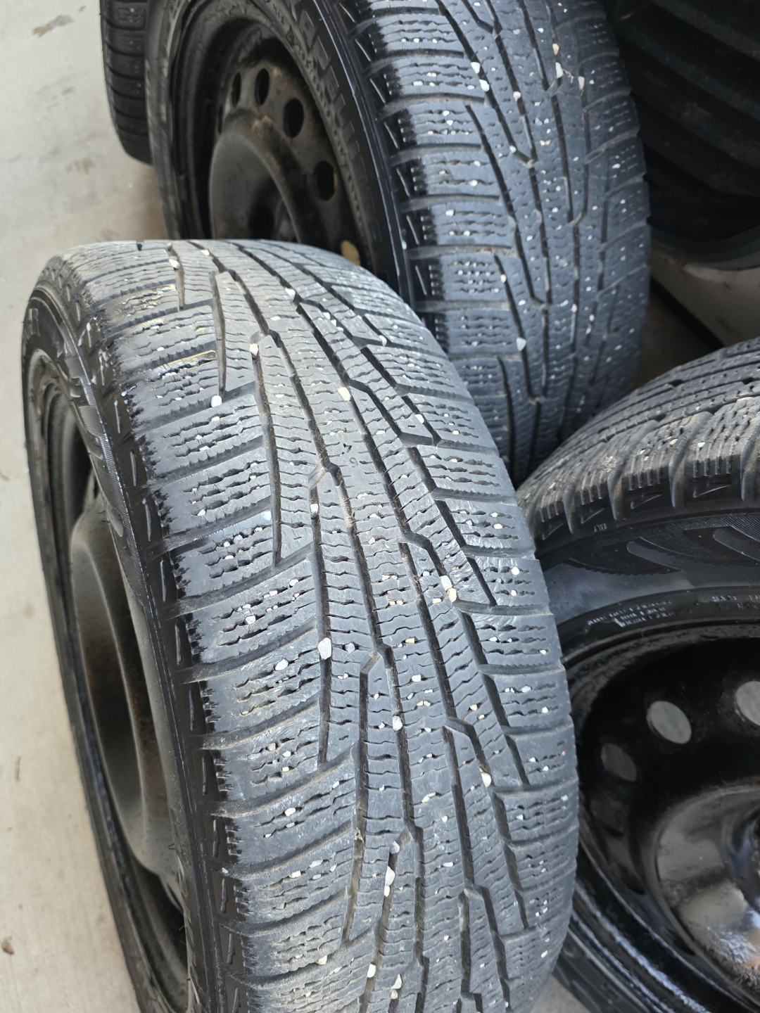 Four Used Nokian Hakkapeliitta R2 Winter Tires on Steel Rims