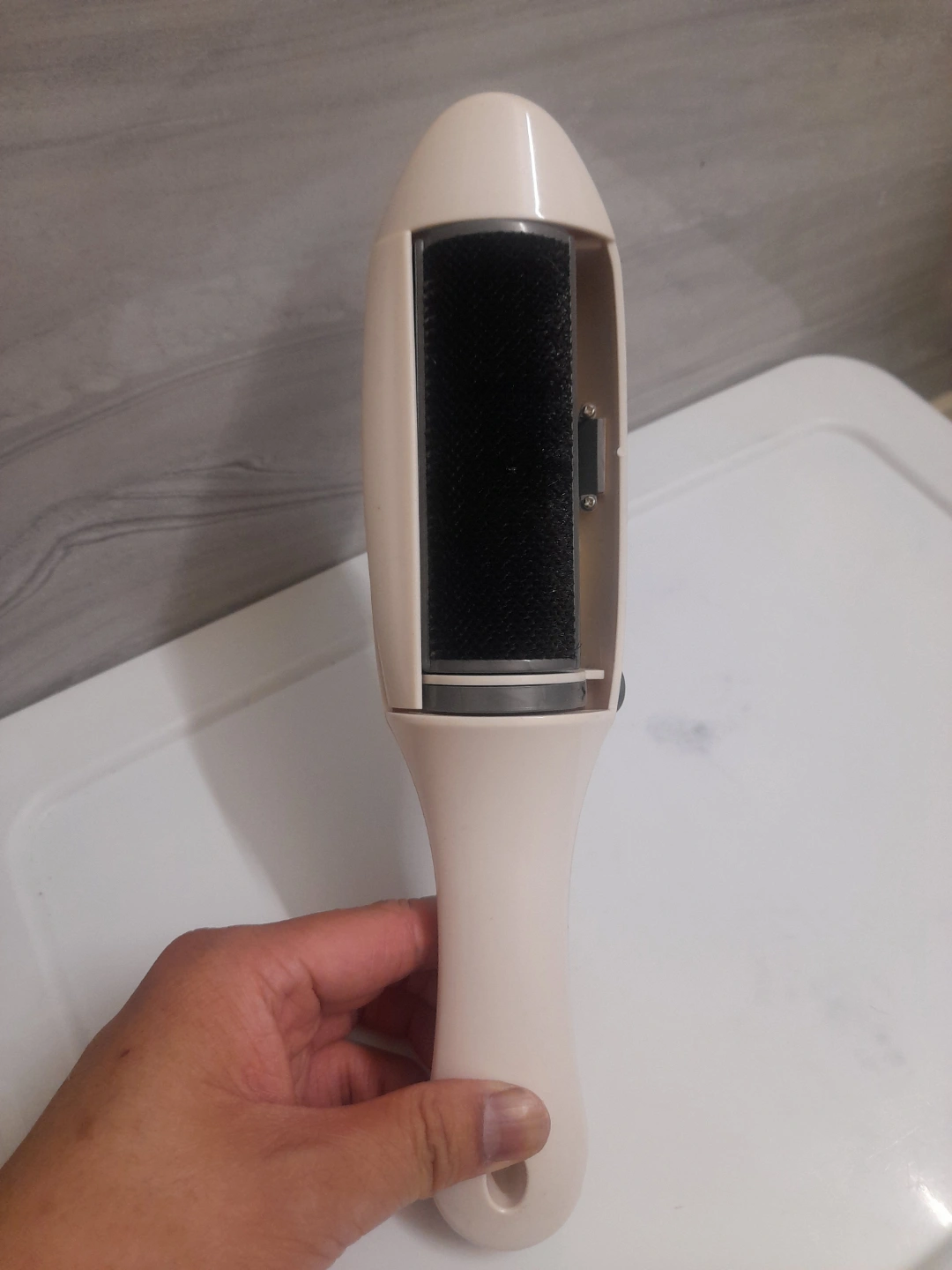 Reusable lint roller. Easy to clean. Compact and portable. Great for clothes and furniture.