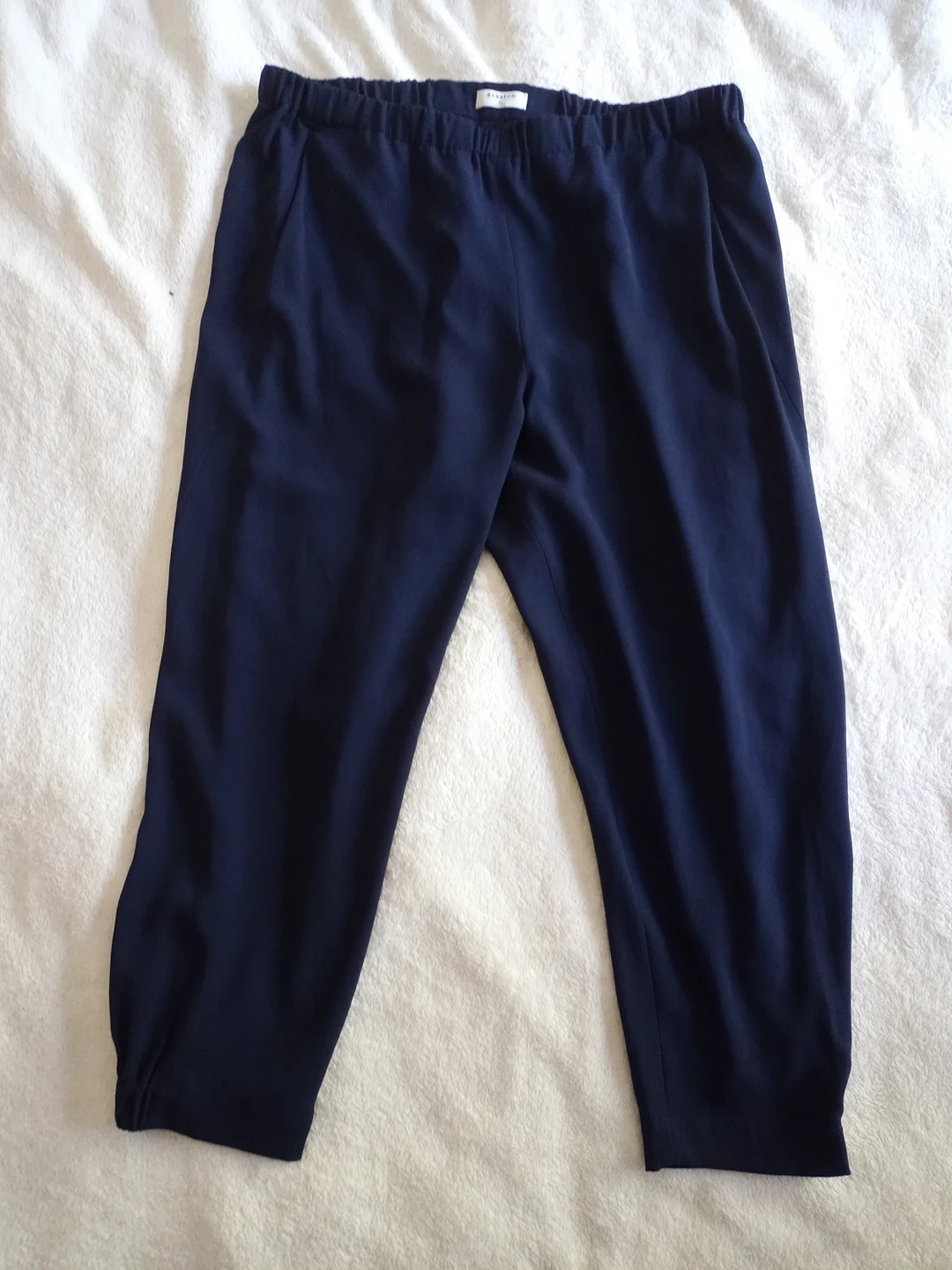 NWOT, dark navy blue, pull on tuxedo pants. Too big for me and thought I could take it in, but got too lazy to tackle it. Fits size 14-16