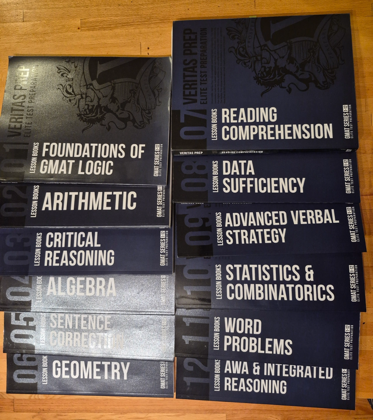 Veritas Prep GMAT prep books. Complete set. Covers various topics including reading comprehension, data sufficiency, verbal strategy, and more.