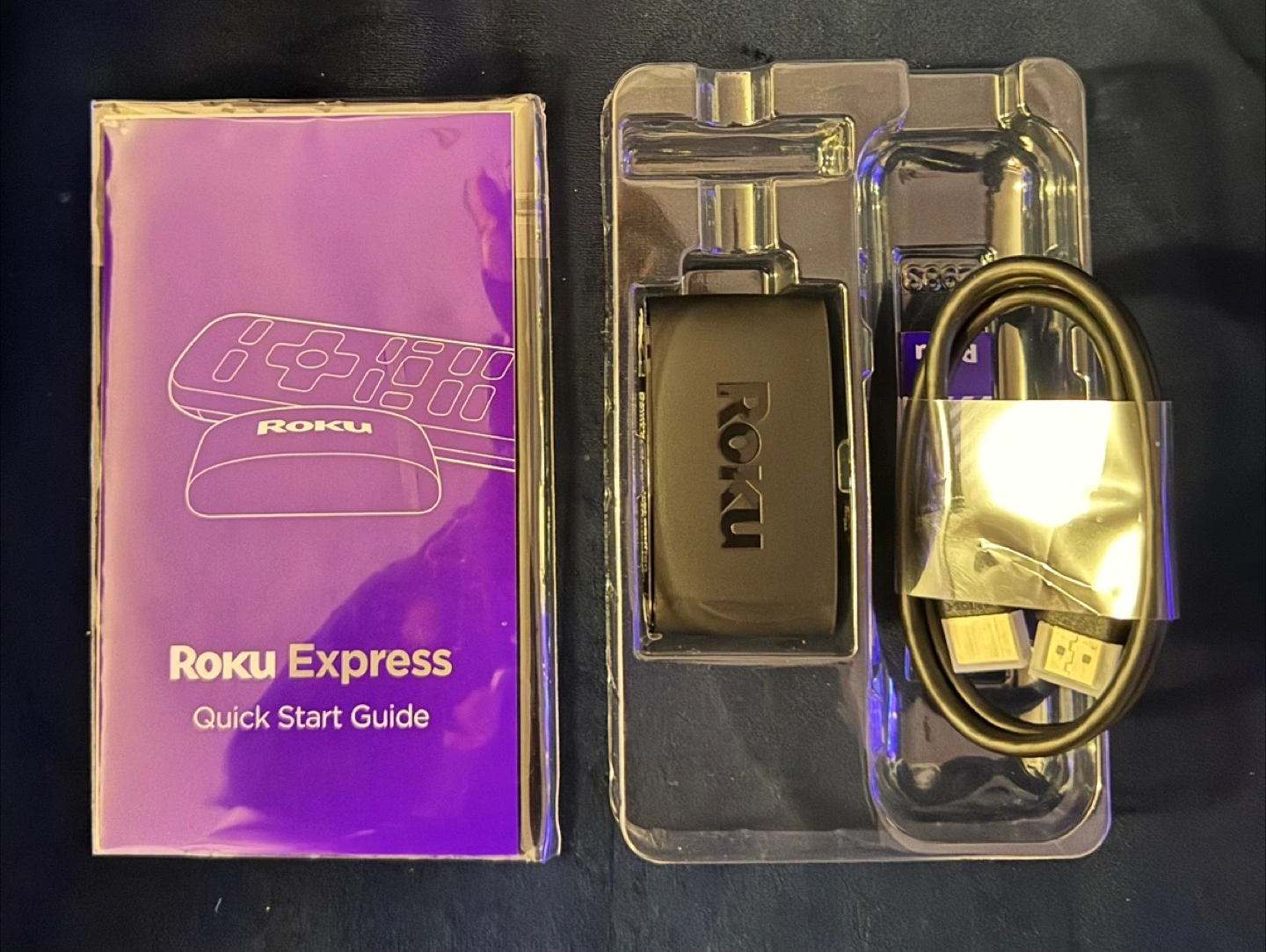 Roku Express streaming stick. Includes remote and power cable. New, never opened. Works with any TV with an HDMI port. Great condition 40 inch Sharp Roku Tv