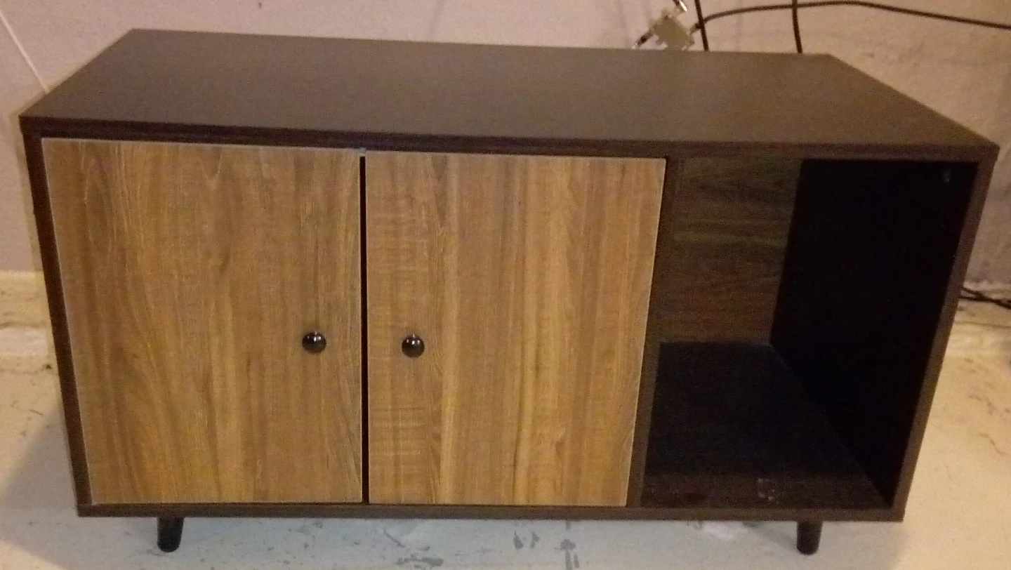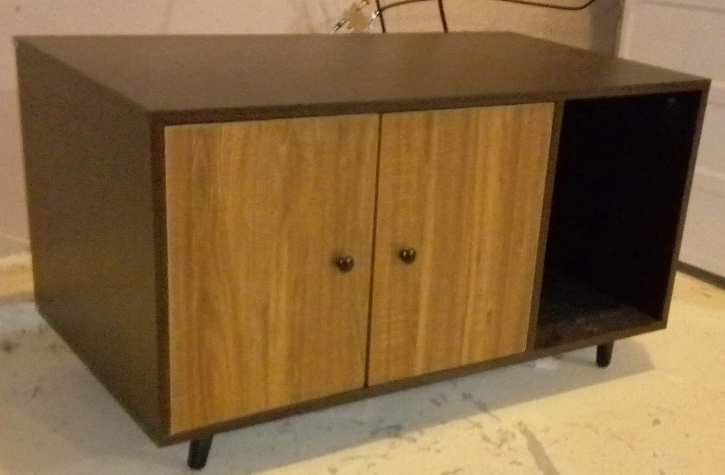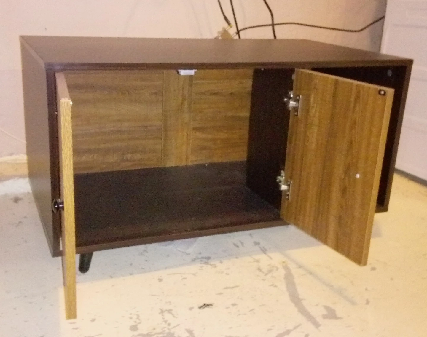 Black and walnut litter box enclosure.