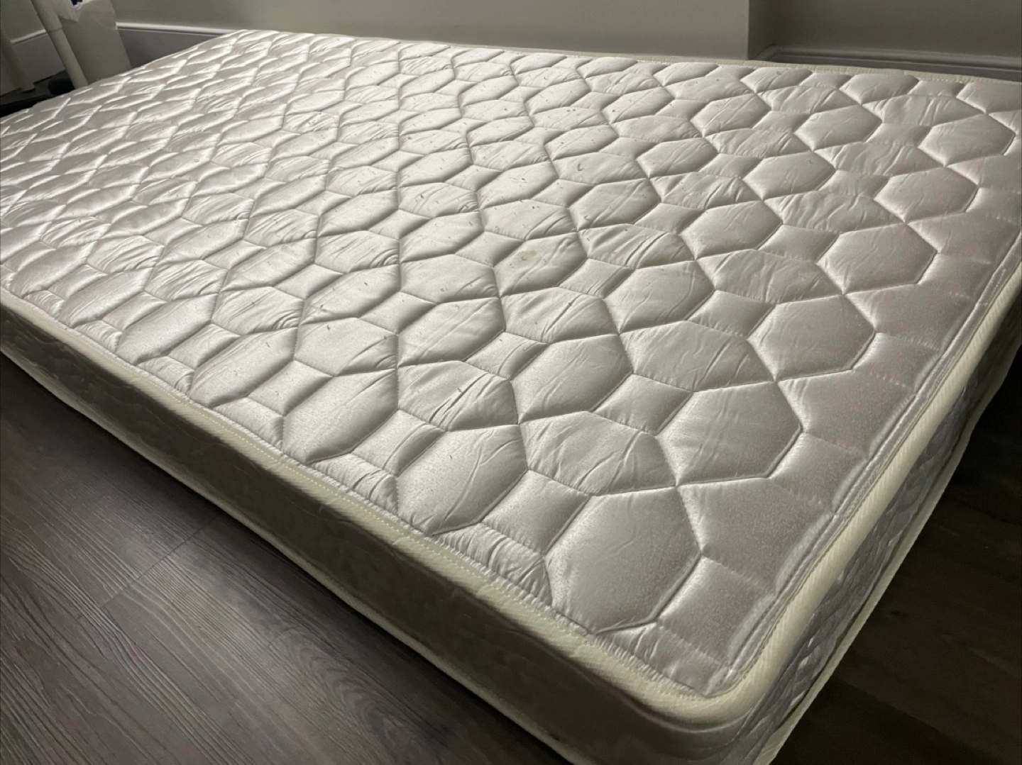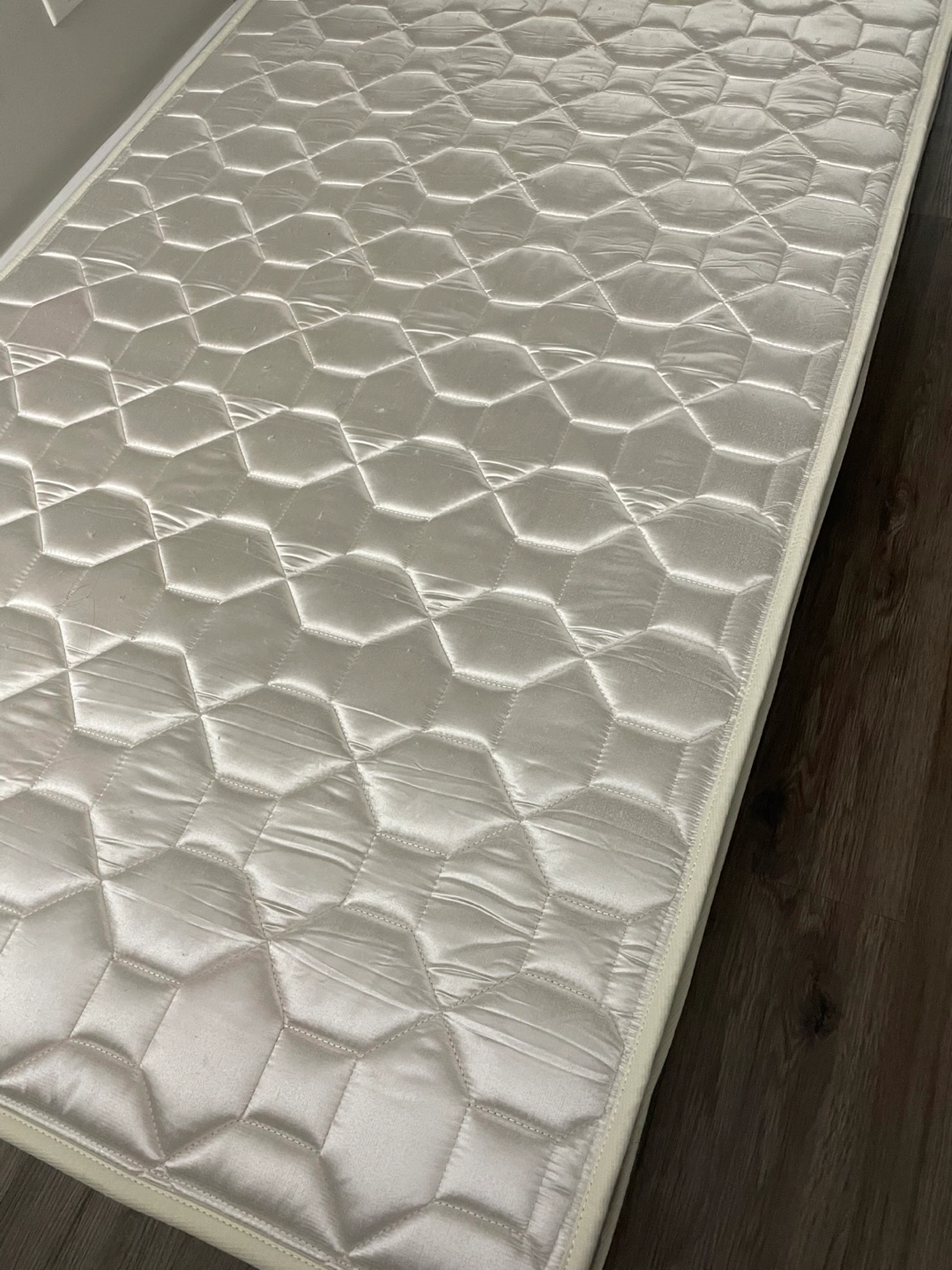 ❗️must go by June 18❗️Zinus 6” Twin size mattress, quilted top. Off-white colour. Foam and spring hybrid.