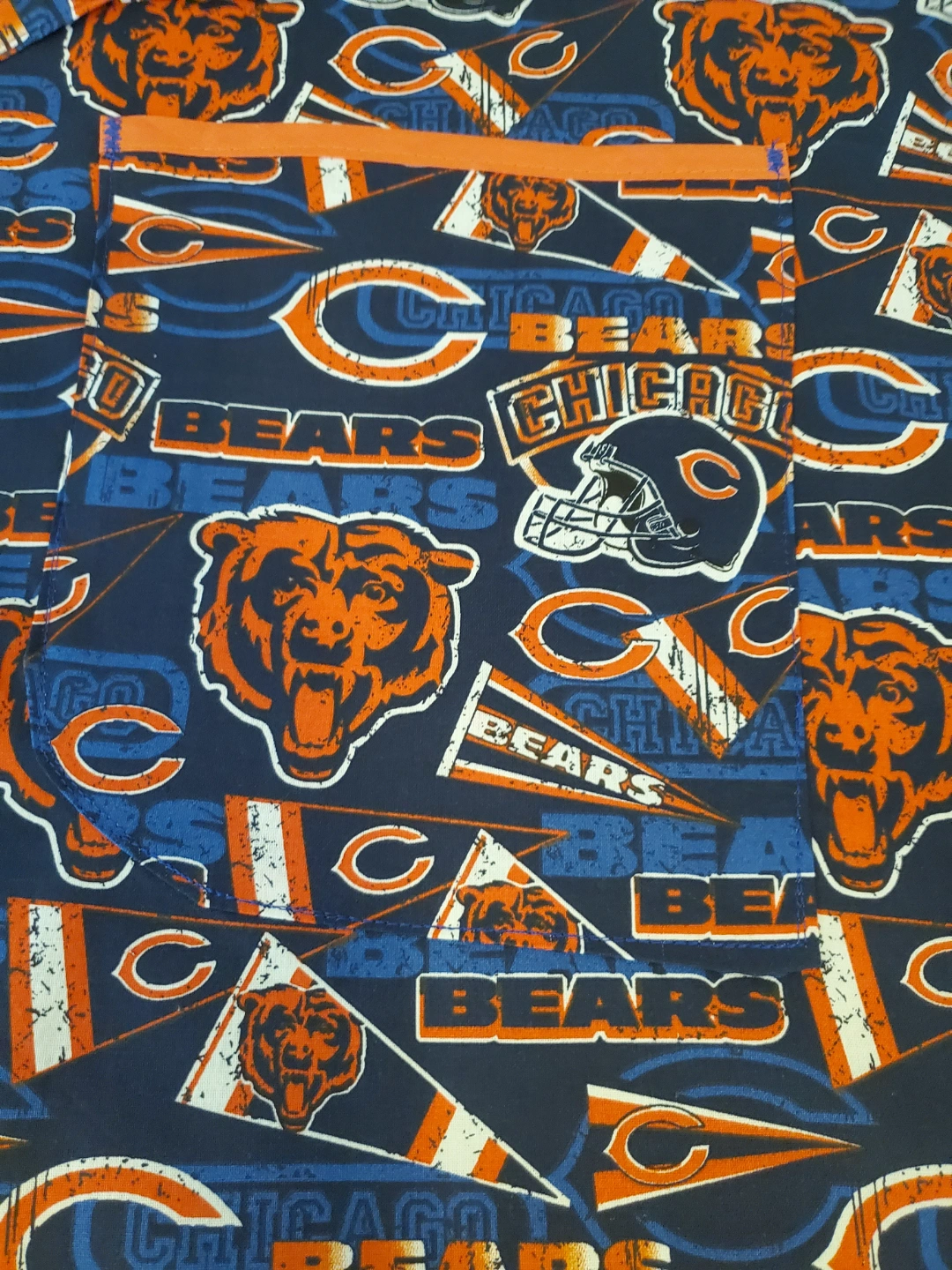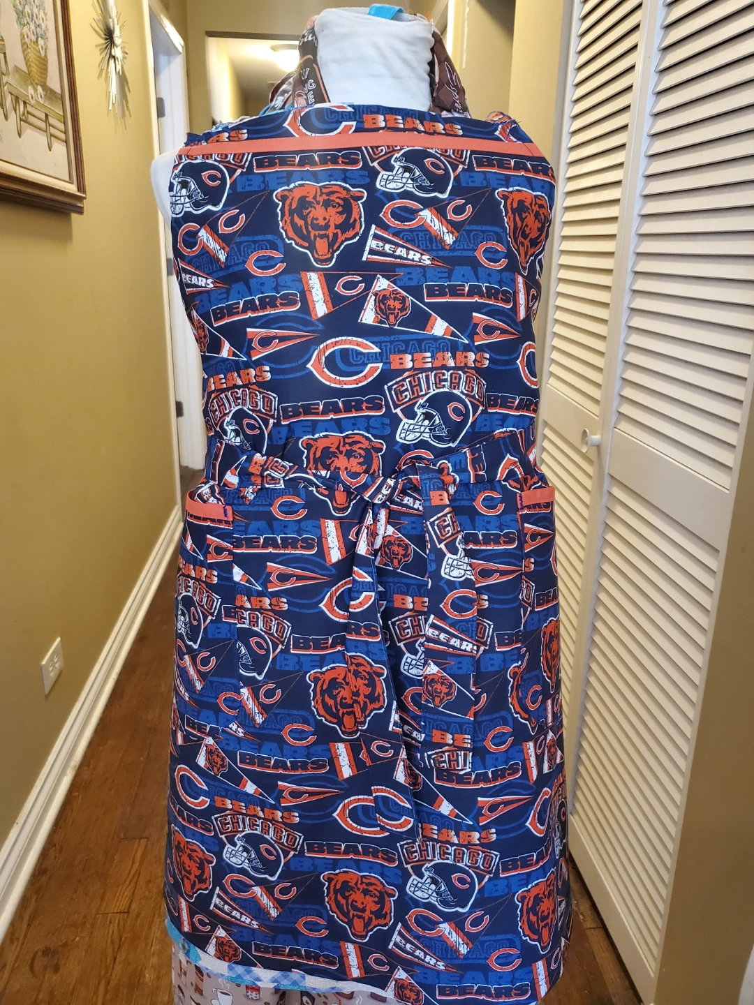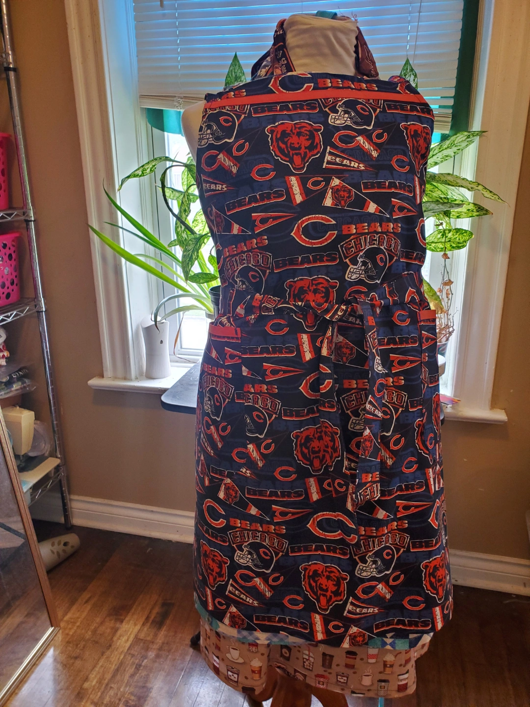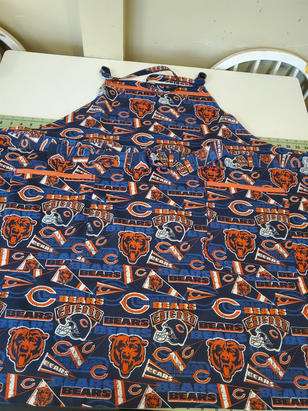 Cute handmade apron. Features Chicago Bears logo and team colors. Two pockets. Great for game day or tailgating.