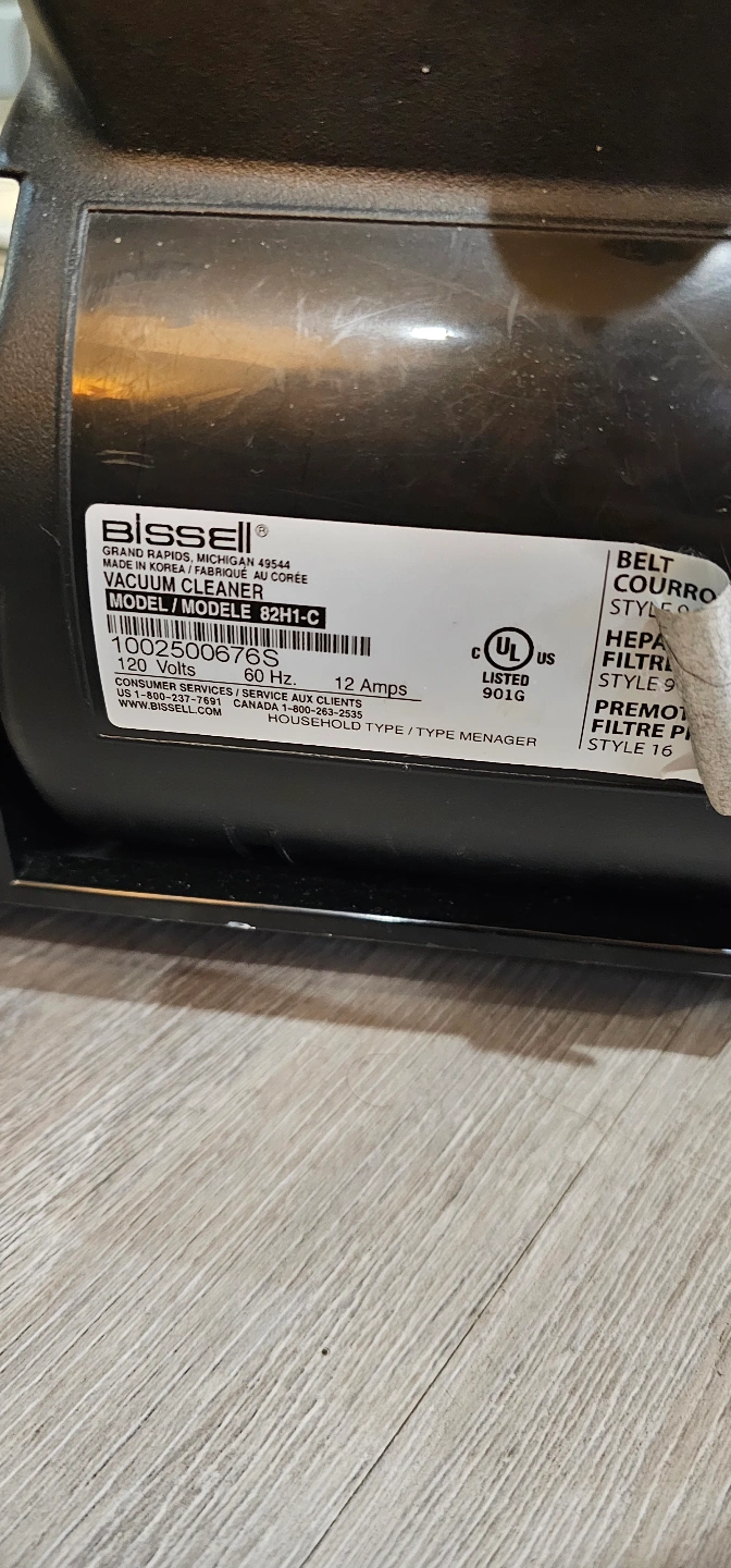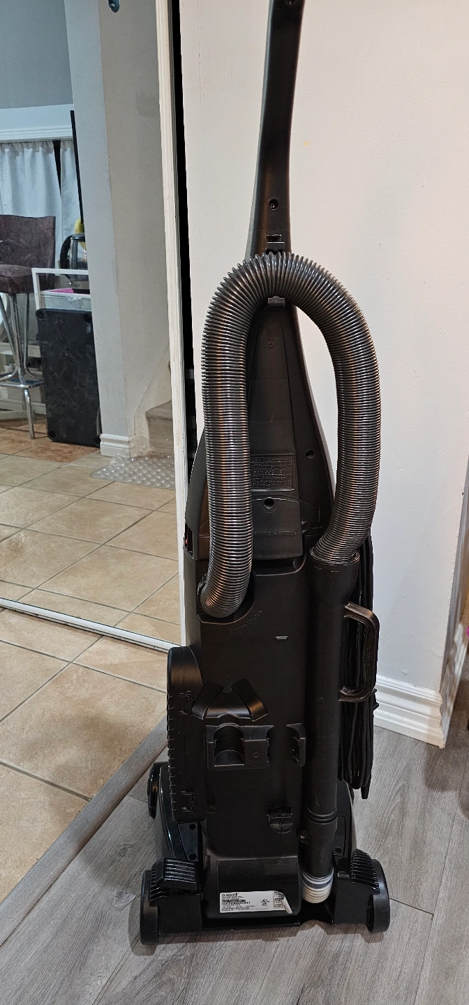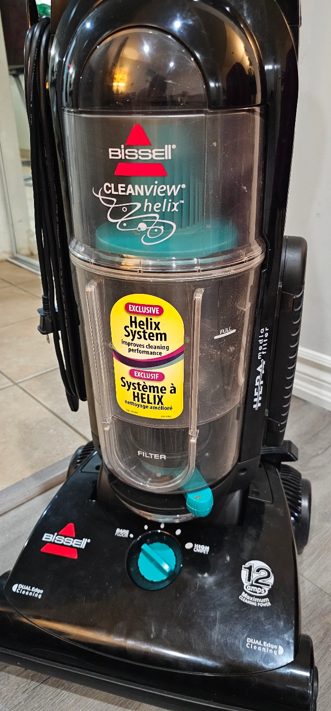 Bagless upright vacuum cleaner. Features a Helix cleaning system and HEPA filter. Model 82H1-C. Good condition.