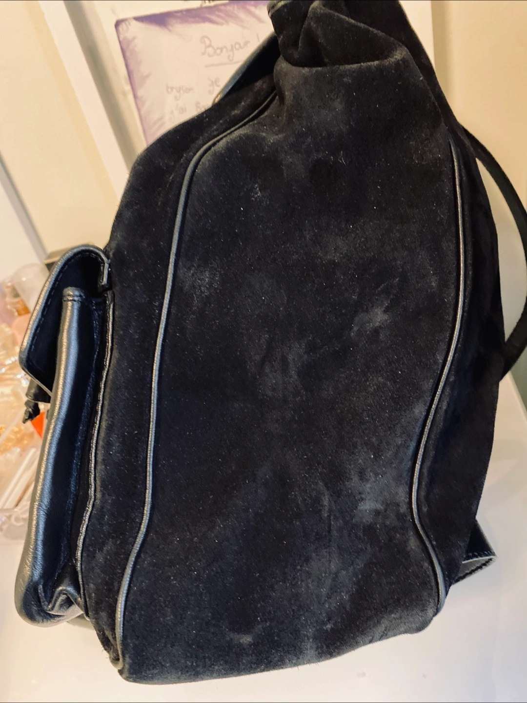 Bottega Veneta Black Suede Backpac Woven Leather Detail