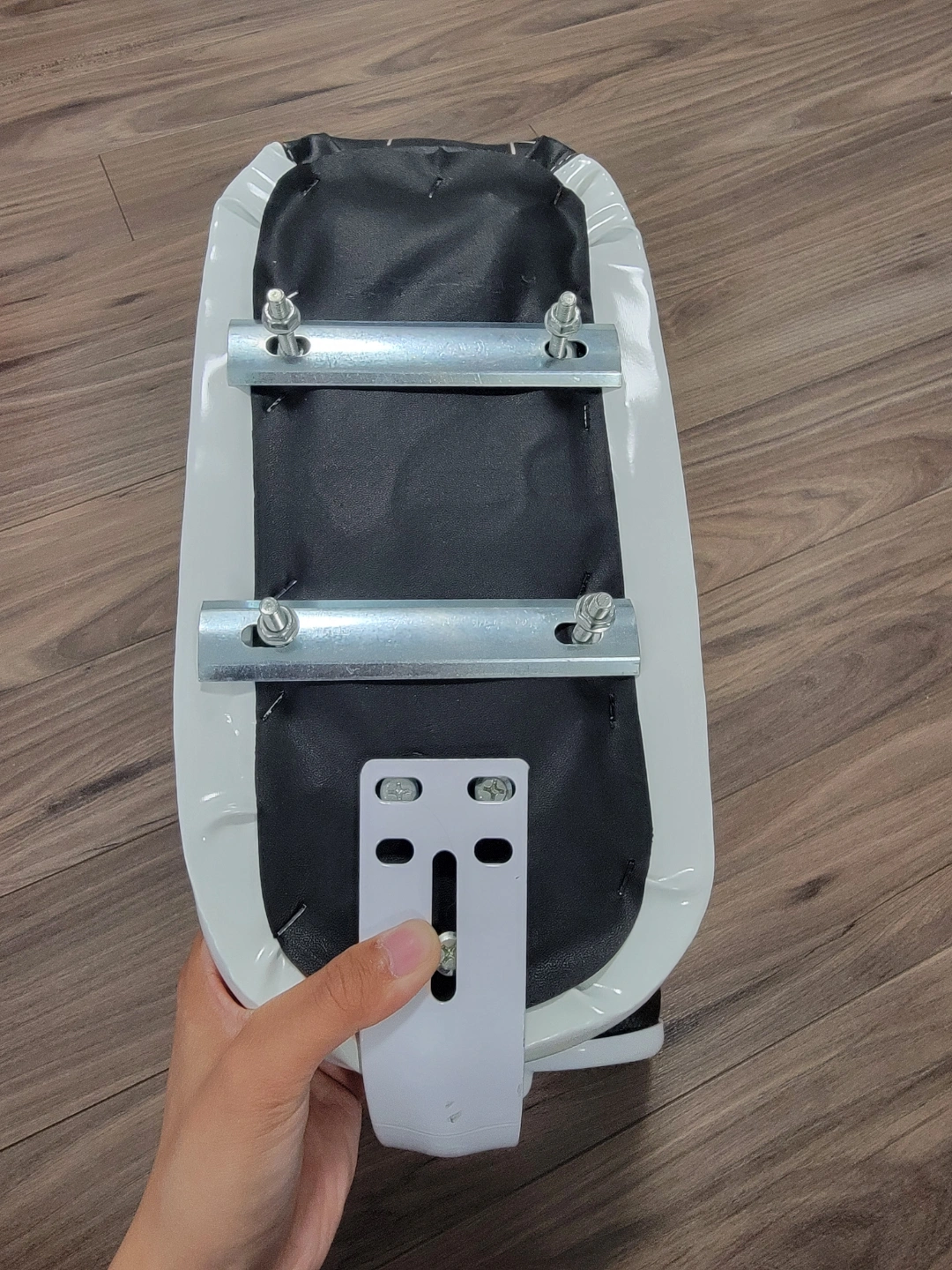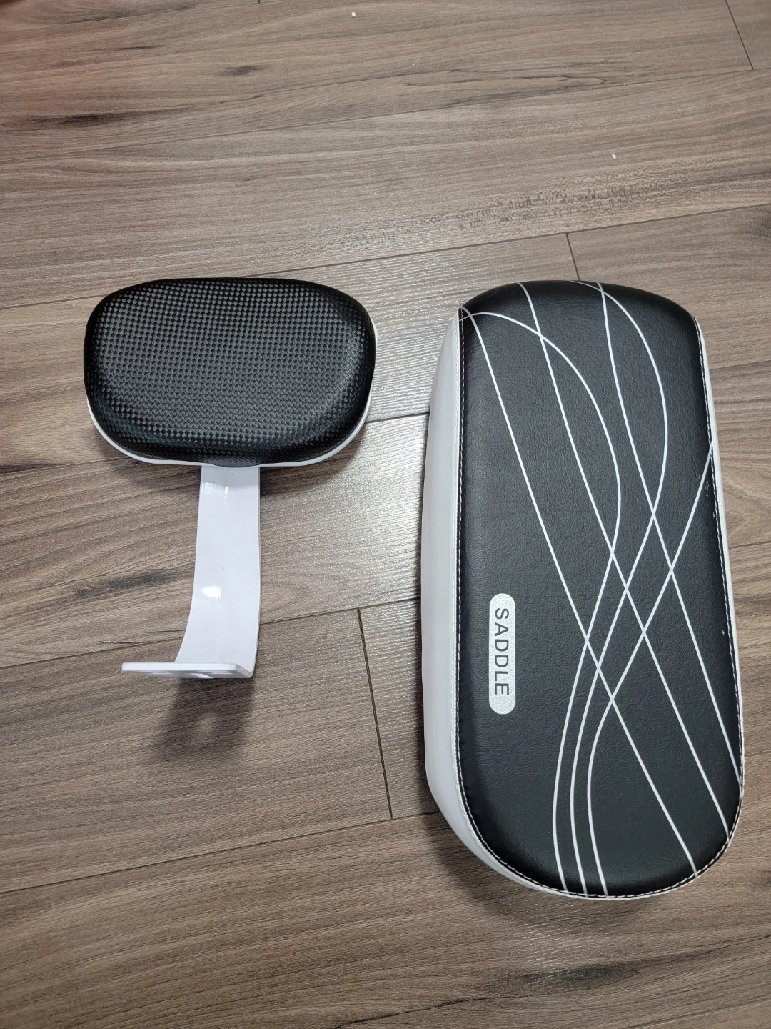 Comfortable bicycle saddle and backrest set. Black and white design. Includes mounting hardware. Suitable for most bicycles.