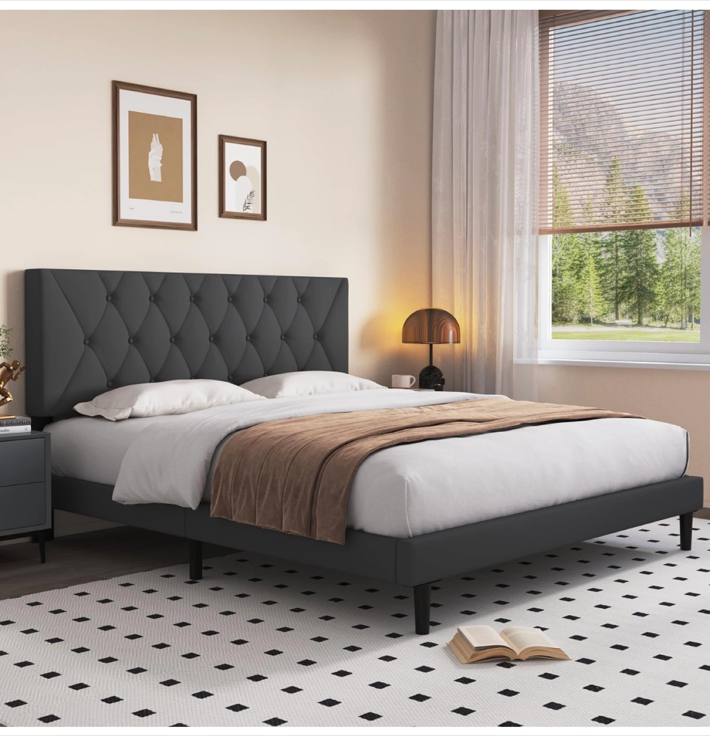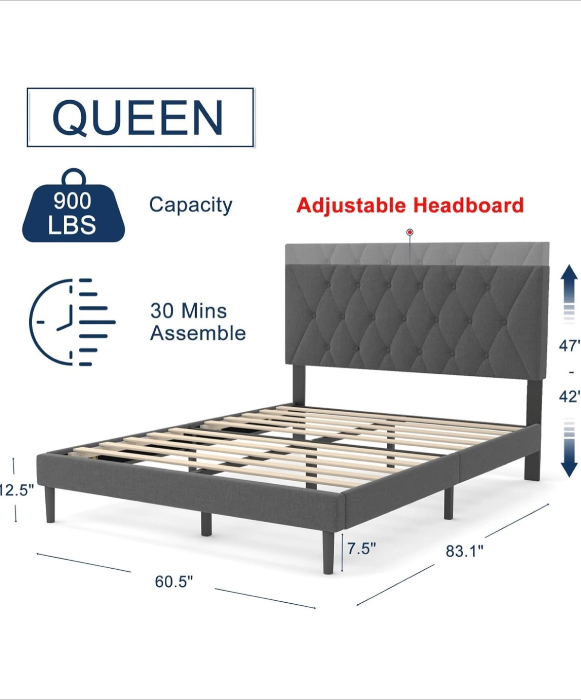 Queen Size Platform Bed Frame with Adjustable Headboard