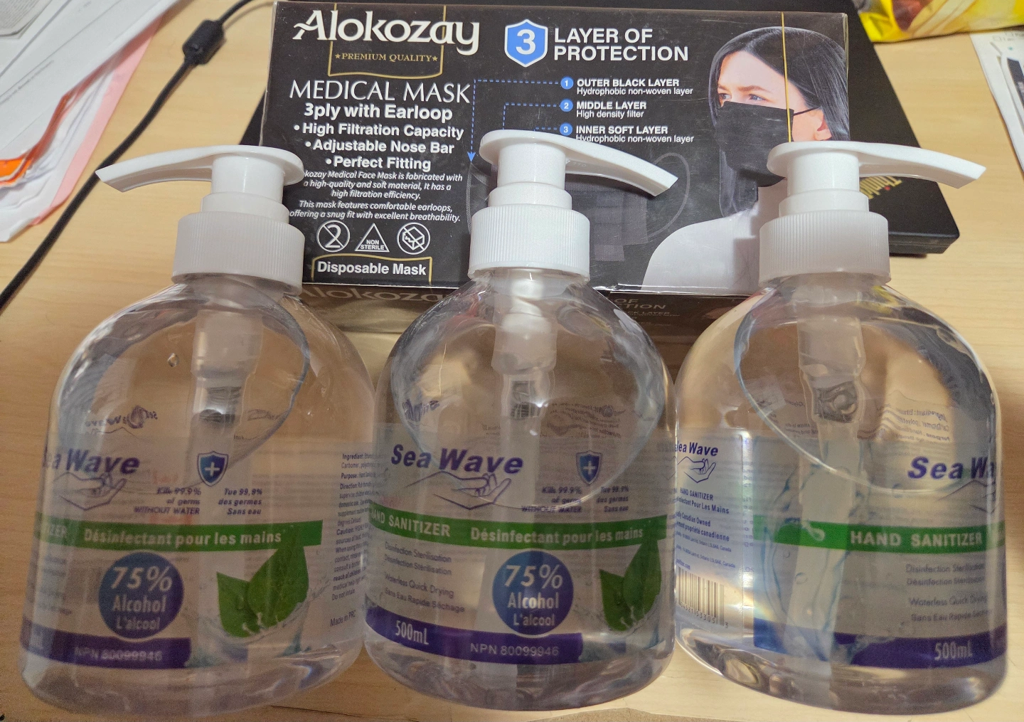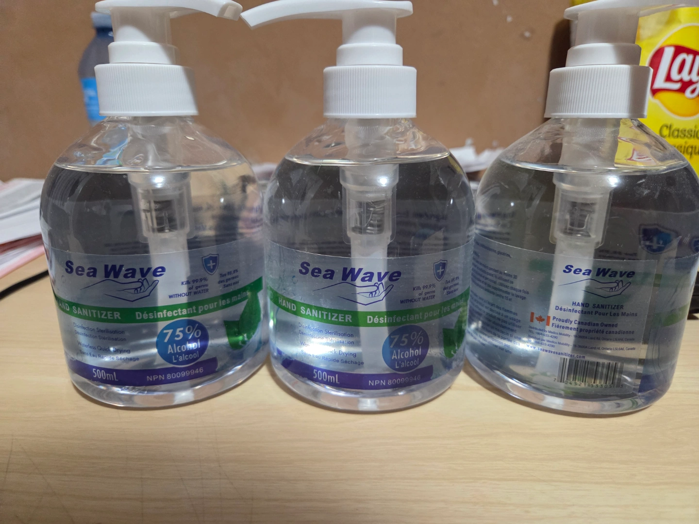 - Three 500ml bottles of Sea Wave hand sanitizer. 75% alcohol. Canadian made 🇨🇦