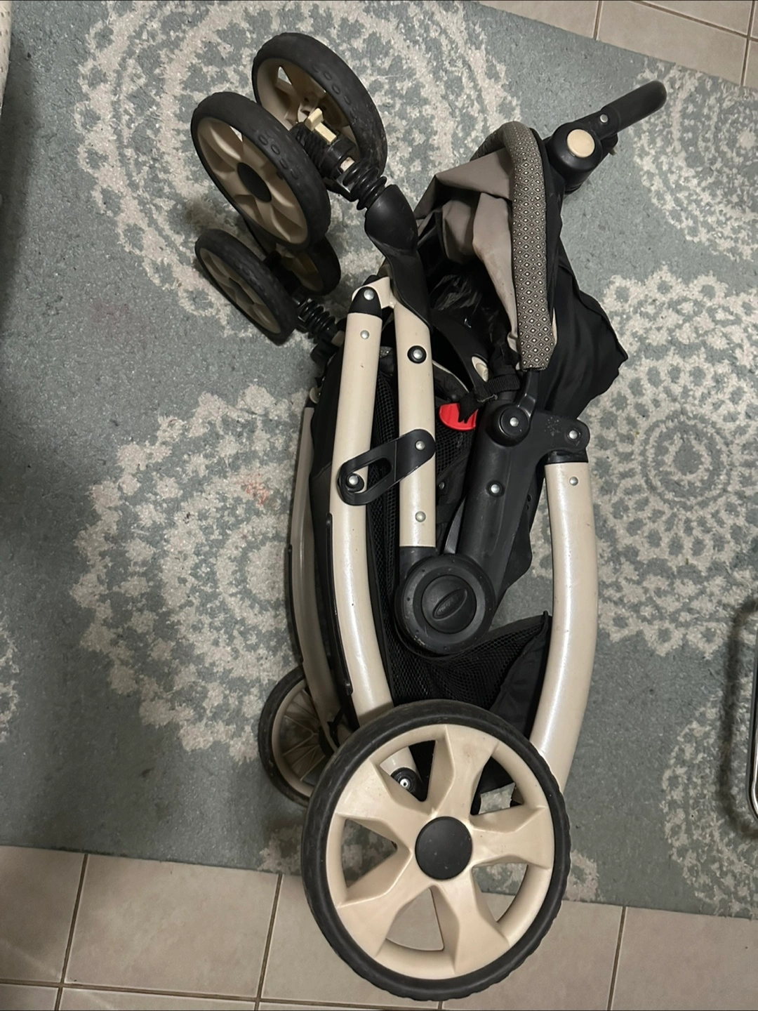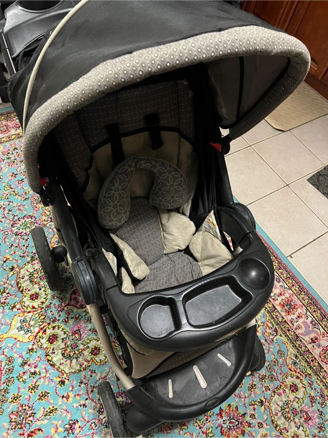 Used Graco stroller. Features a cup holder and storage basket. Suitable for infants and toddlers. Some wear and tear. Jersey heights. Cash only