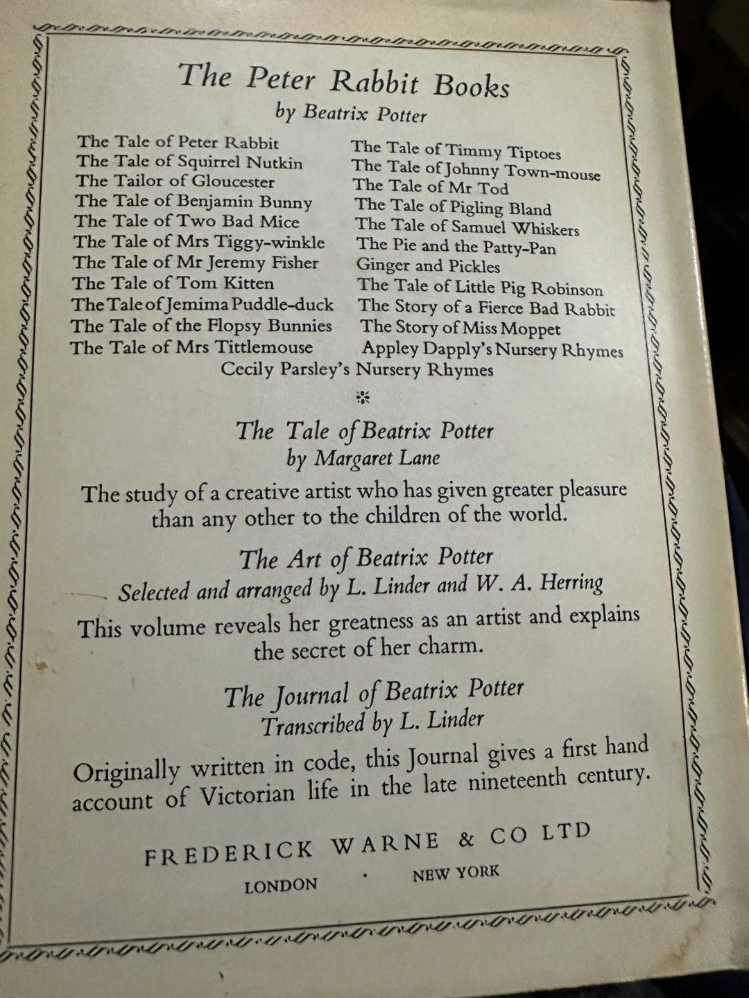 Vintage copy of The Tale of Mr. Jeremy Fisher by Beatrix Potter. Published by F. Warne & Co. LTD. Includes a list of other Beatrix Potter books.
