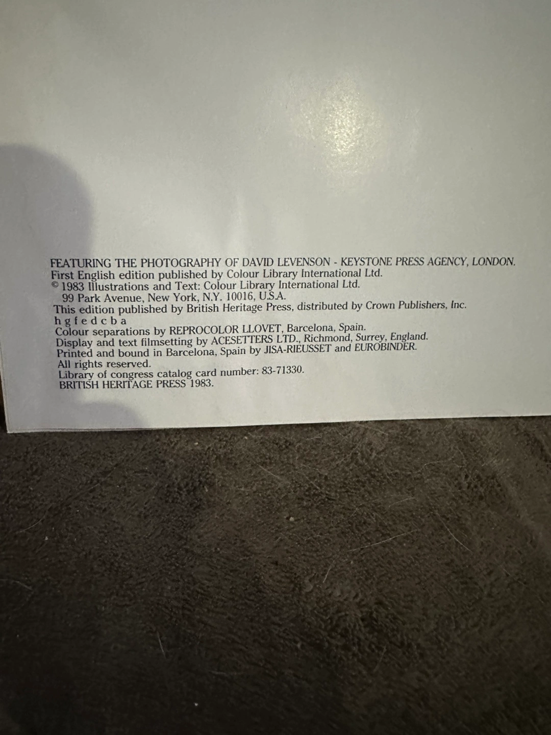 Hardcover book. Features photography by David Levenson. Foreword by the Duke of Beaufort. First English edition published by Colour Library International Ltd. British Heritage Press 1983.