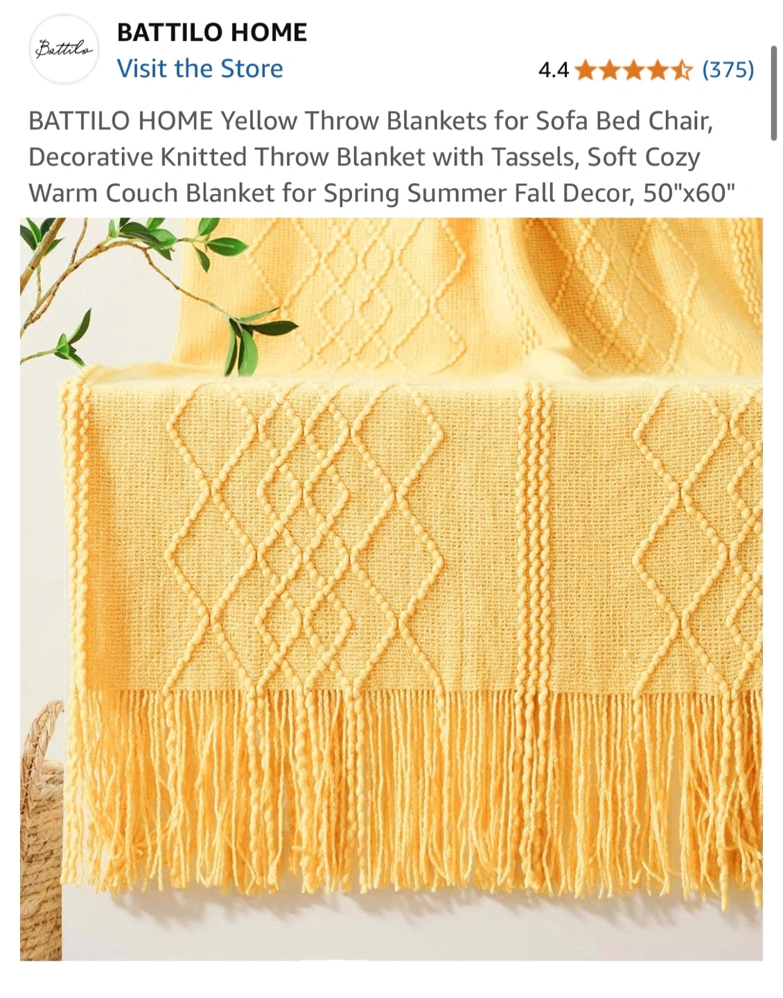 138Soft cozy throw blanket. Features a decorative knitted pattern and tassels. Measures 50"x60" Brand new, sanitary washed it once when it arrived It was $45 after tax at Amazon