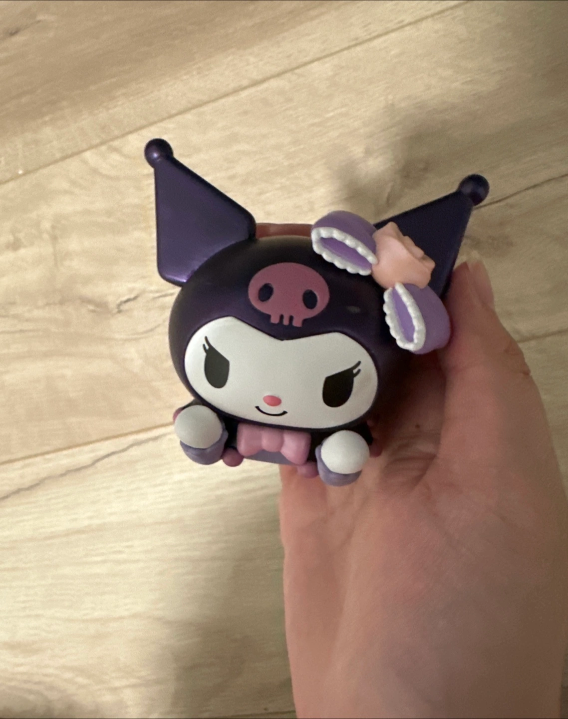 203Small collectible Kuromi figurine. Purple with pink accents. Cute design.