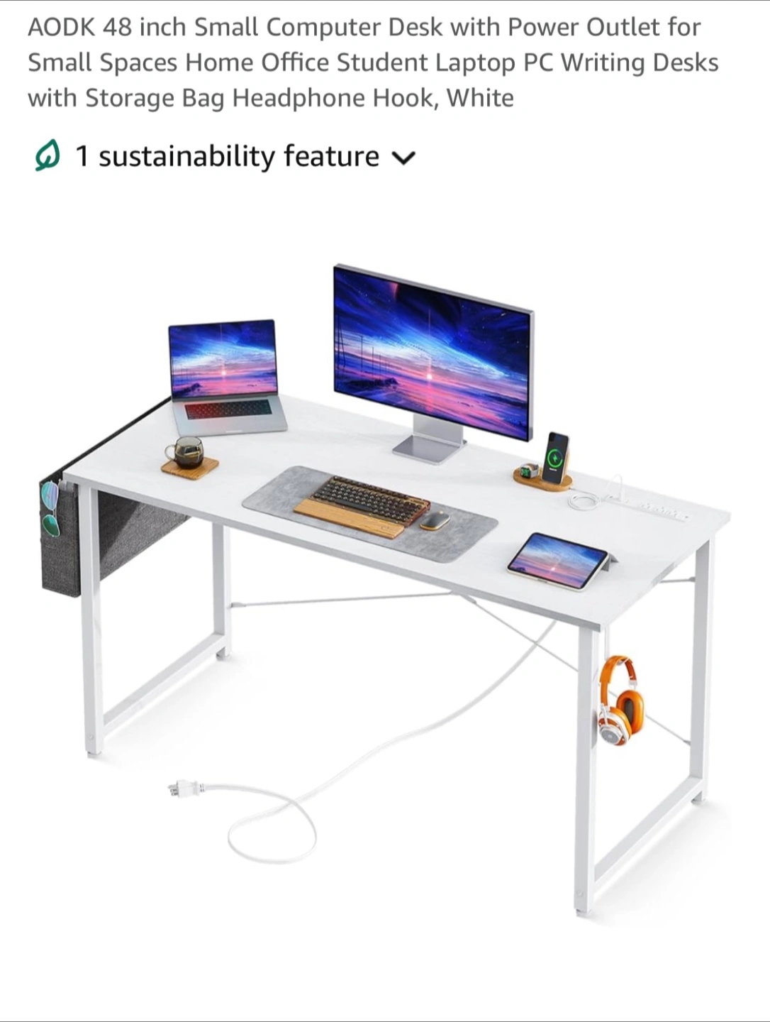 FINAL sale! White Computer Desk with Power Outlet