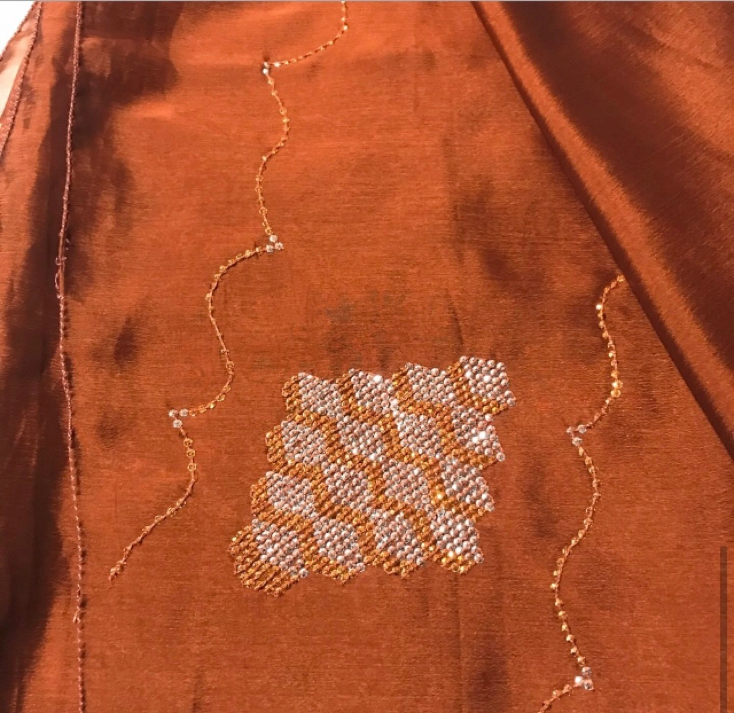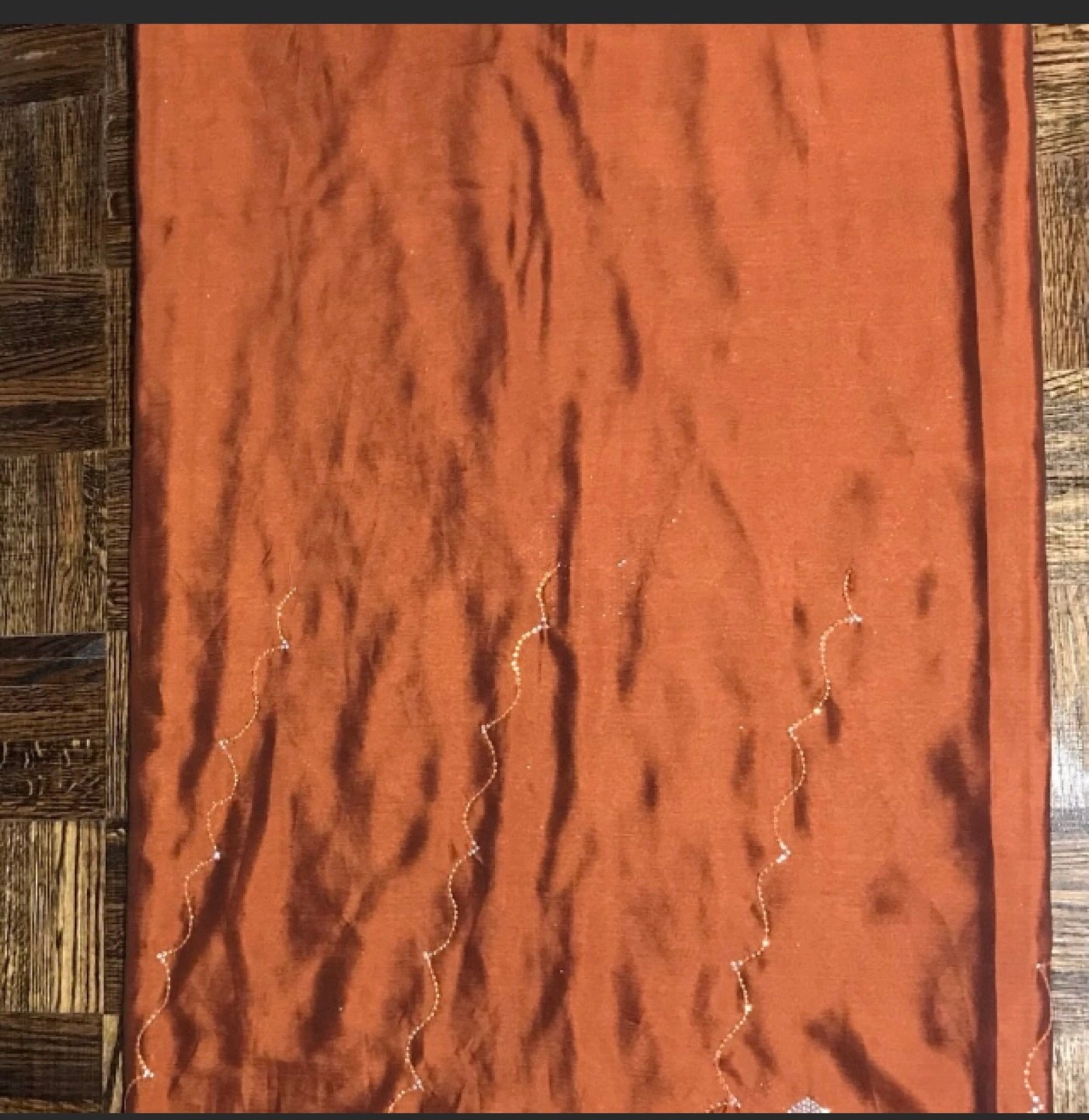 π Rusty/Burnt Orange Saree/ Polka Dot Fabric
