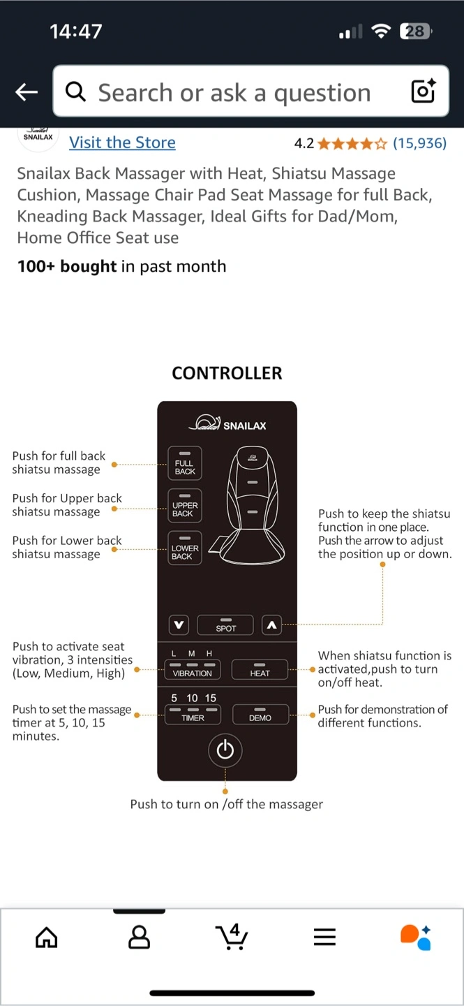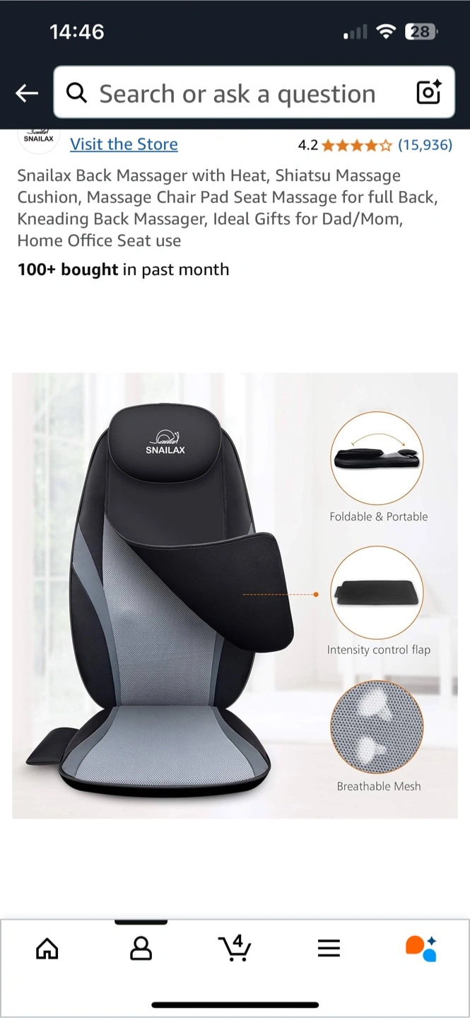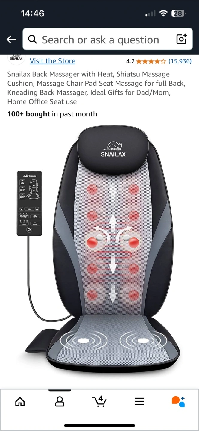 Enjoy a relaxing massage anytime with this Snailax shiatsu back massager featuring heat and adjustable settings. This unit is in great condition and ready to provide soothing relief.
