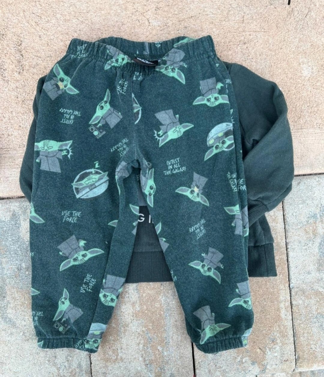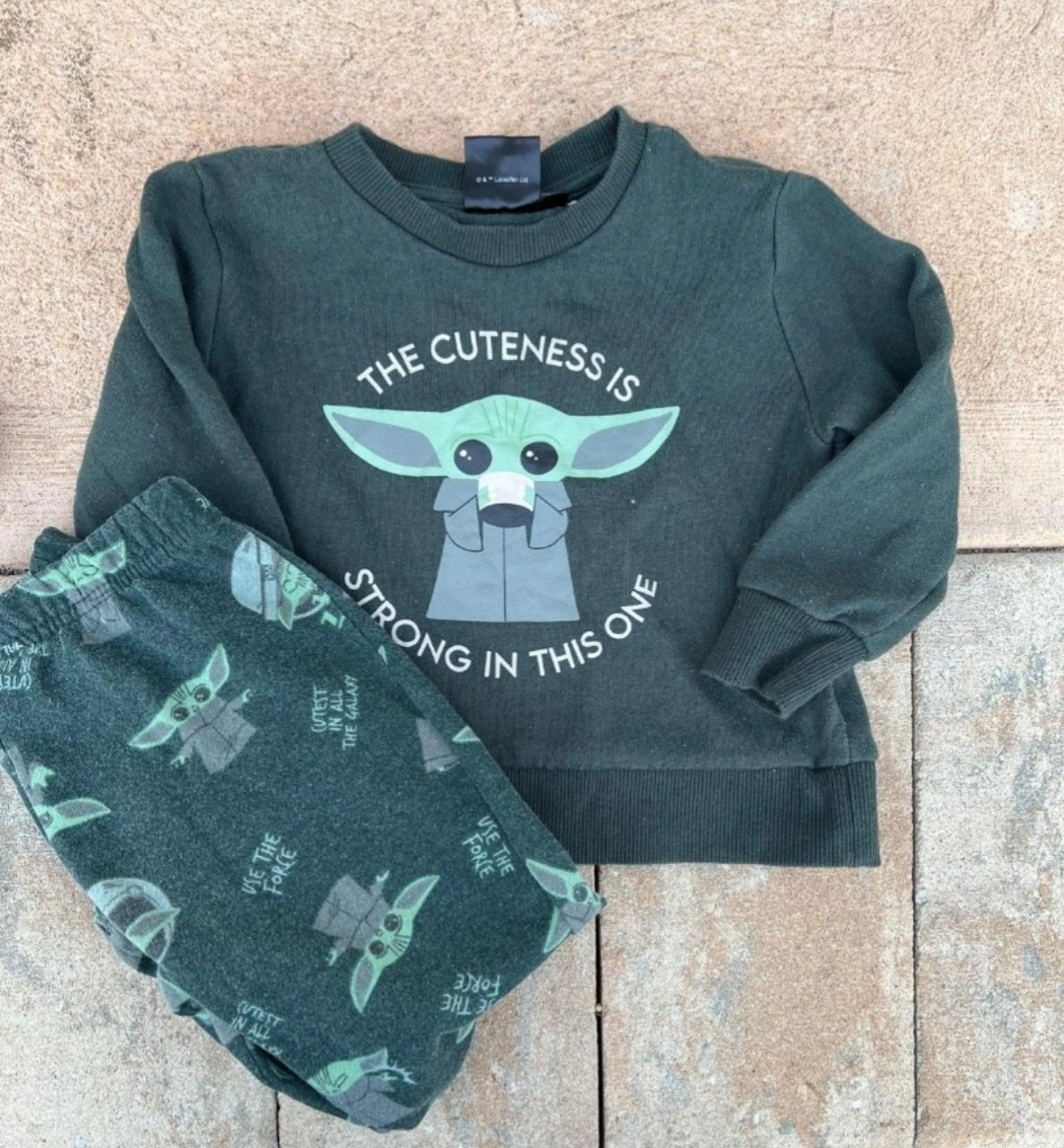 A two-piece pajama set. Features The Child, also known as Baby Yoda. Includes a long sleeve top with graphic print and pajama pants. Perfect for a peaceful night's sleep.18mth