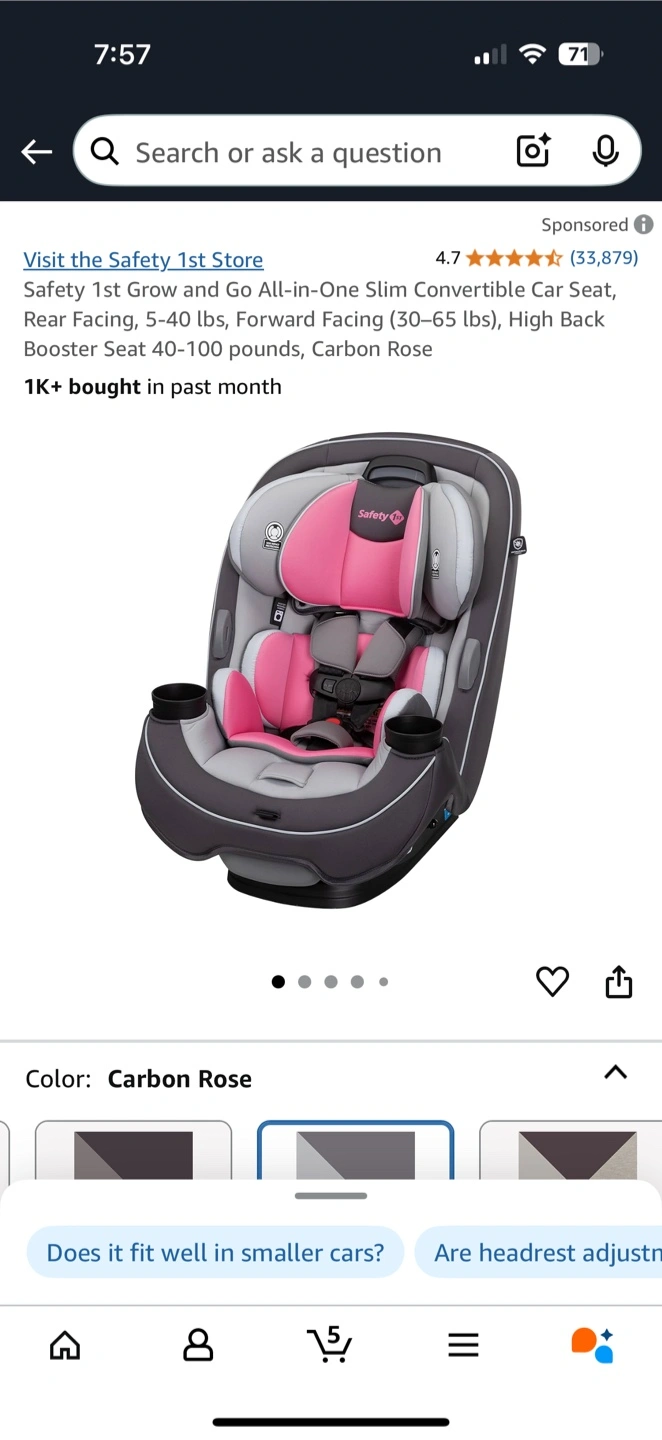 Convertible car seat in a carbon rose color. Includes cup holders. This seat will provide peace of mind while traveling.