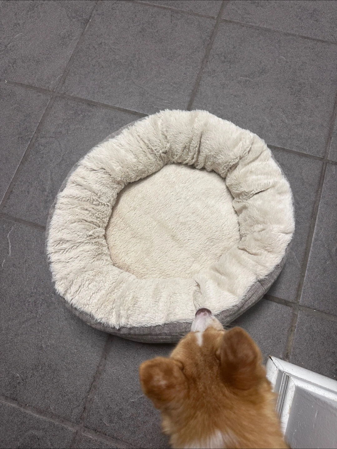 This dog bed is in good condition and ready for a new furry friend to call it home.