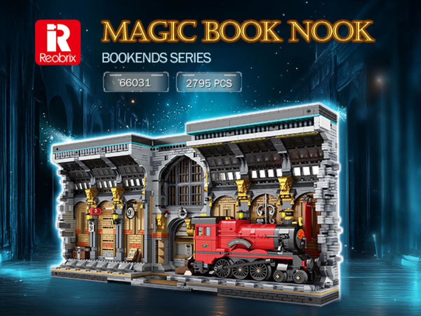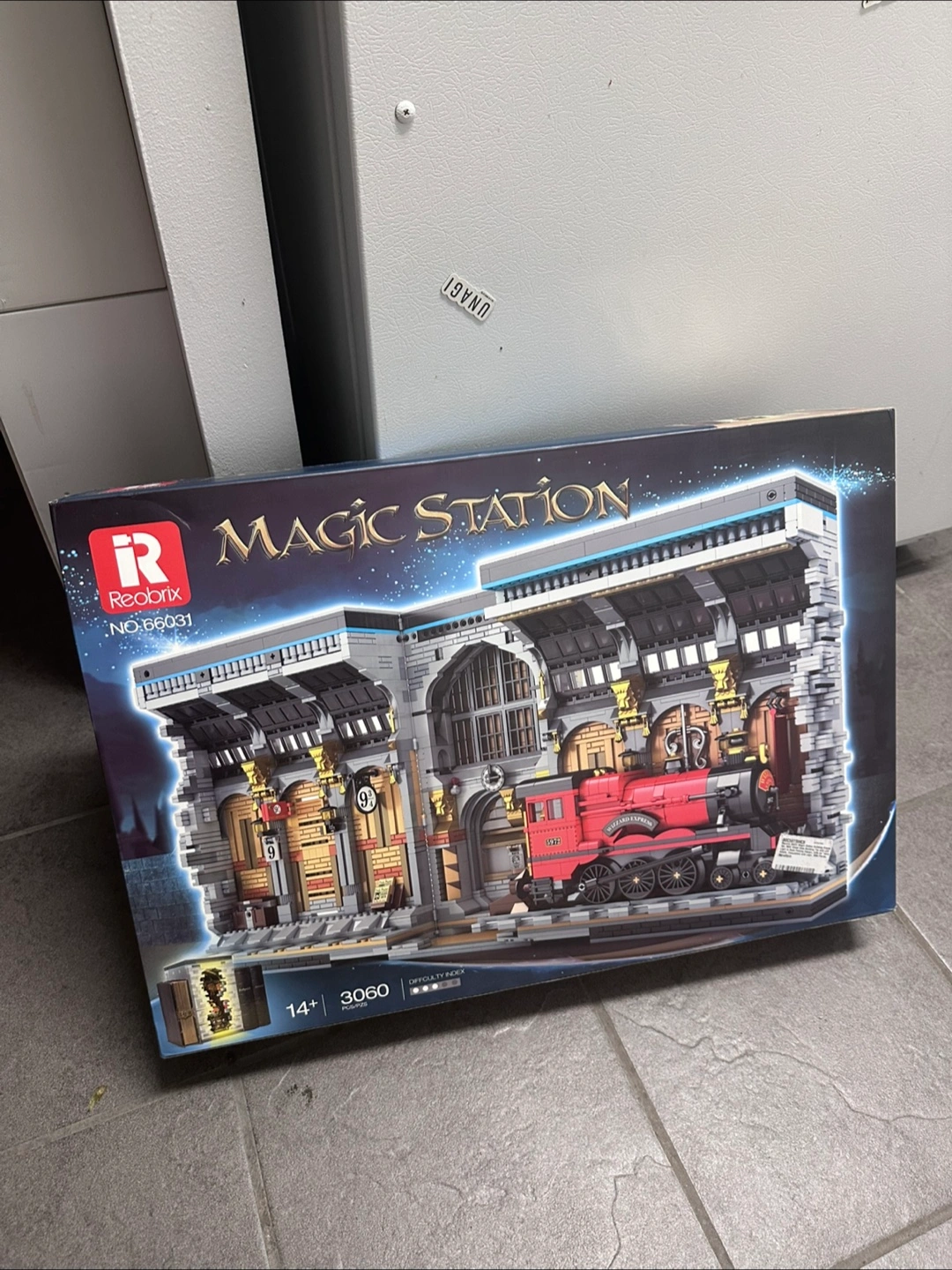 Model of a magic train station, with a red train. The kit is sealed in a box. A great way to unwind while building something new.