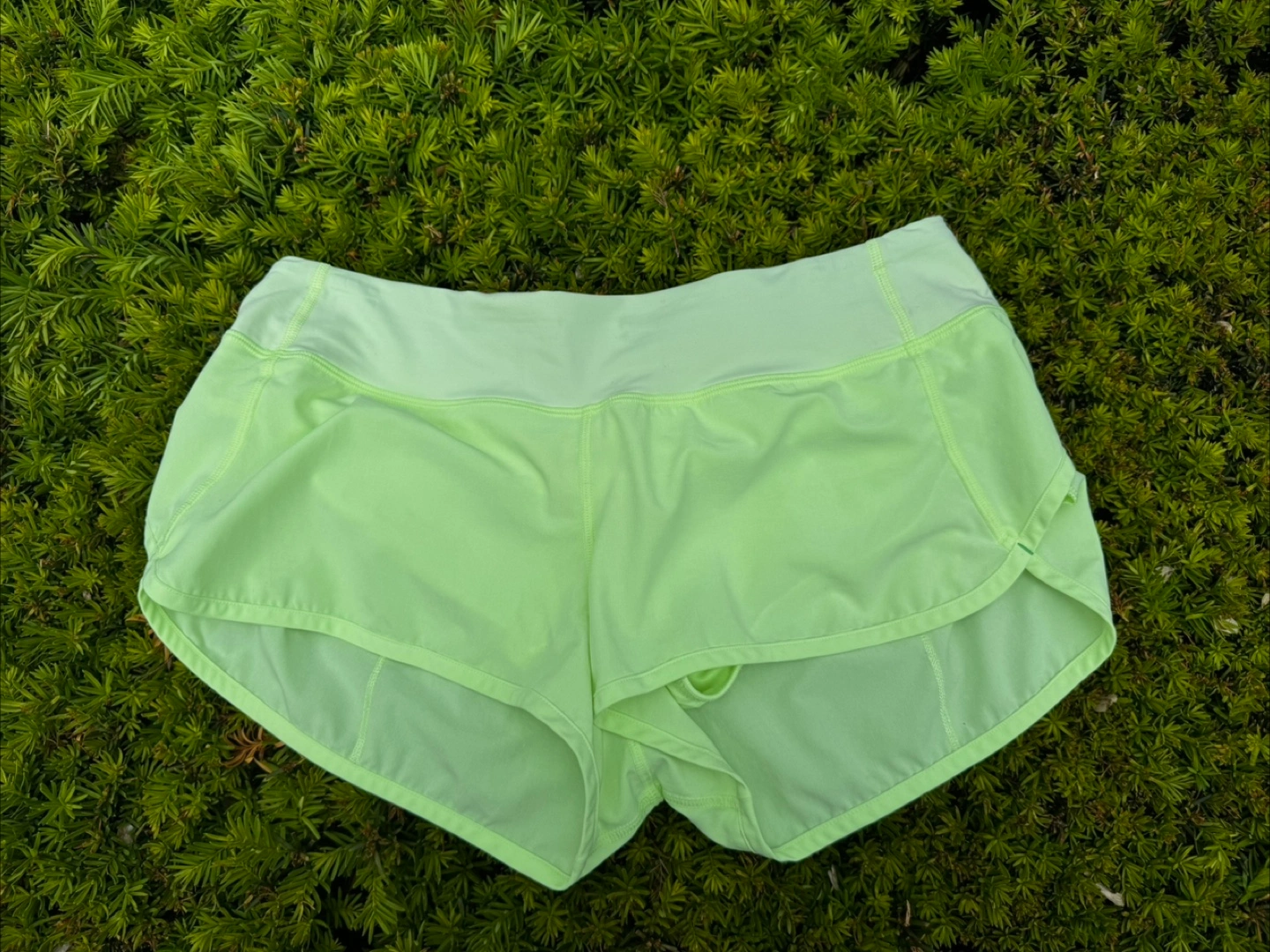 Bright neon athletic shorts. Features a small pocket in the back with a zipper. You can go for a peaceful run or enjoy a relaxing walk in these shorts. Perfect for Miami, Fl.
