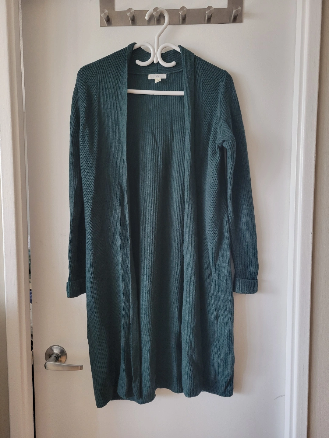 RW&Co. Size S. Long length (5'4 and it hits an inch below my knees, as an approximation)