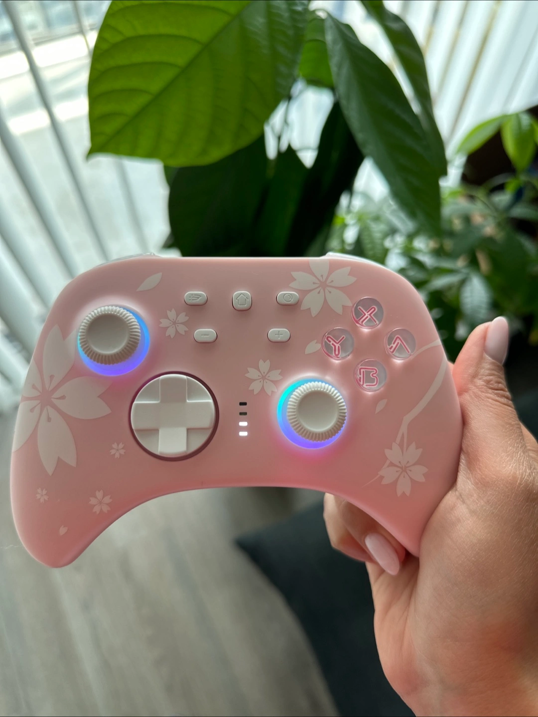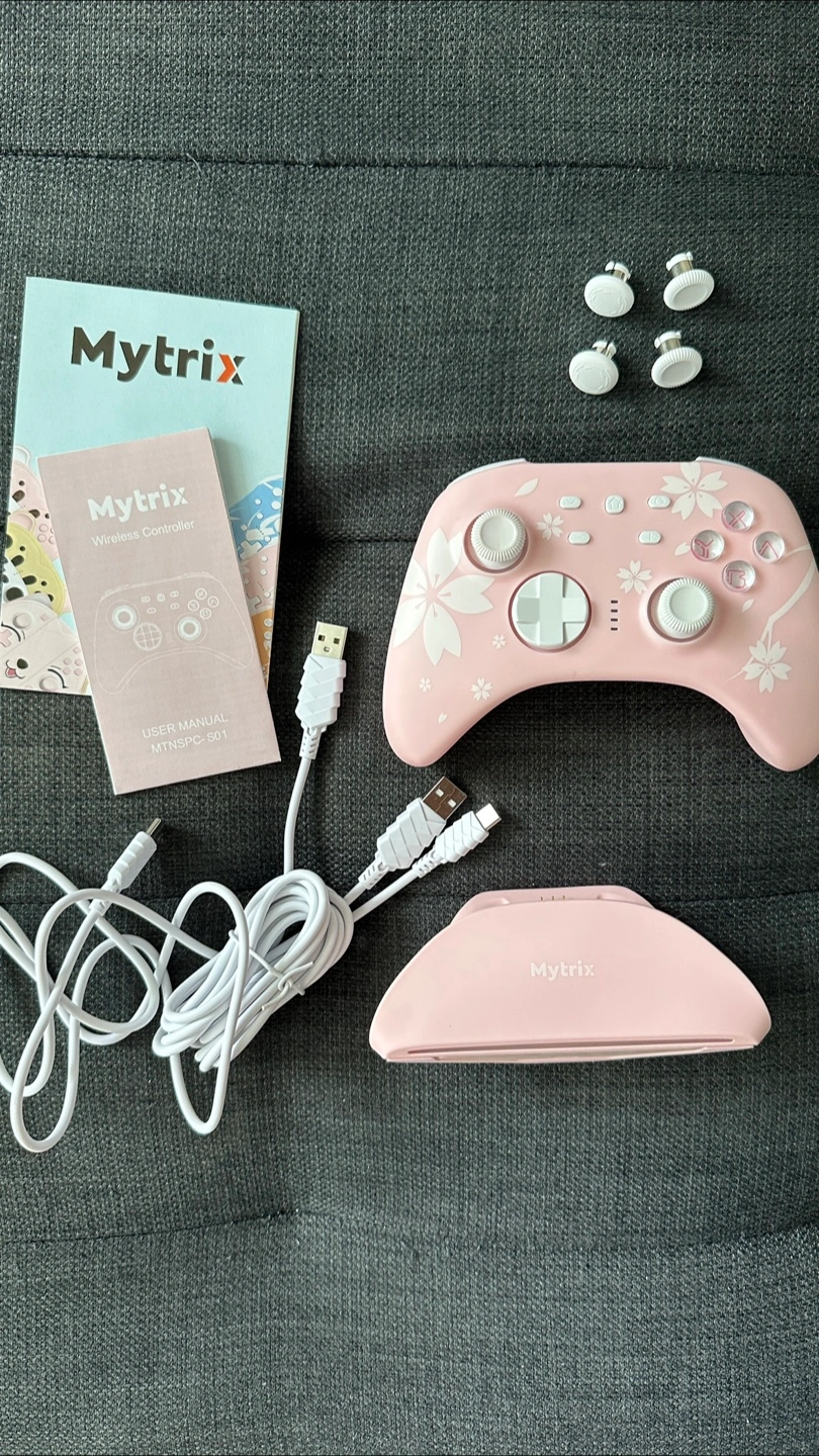 Kawaii Pink controller with white floral accents 🌸Comes with a charging dock and additional accessories. Like new condition, used once.