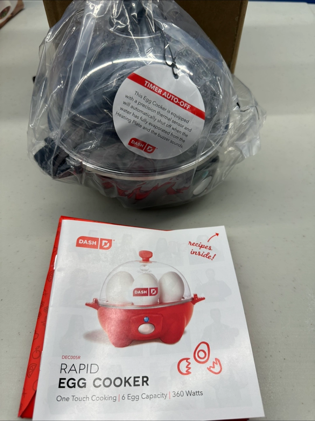 *New in original packaging*. Dash electric egg cooker. Features a clear dome. One-touch cooking capabilities. Includes manual