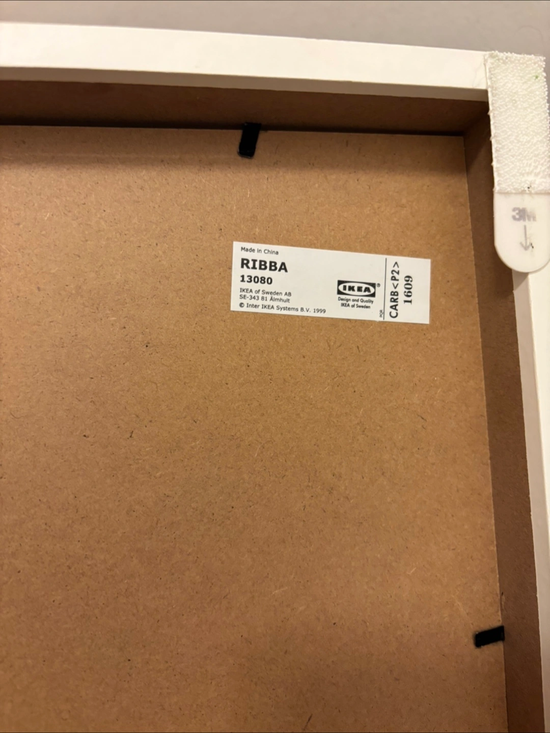 IKEA Ribba picture frame. Frame includes a mat. Great for displaying your favourite art pieces. Note that they are in used condition and the wooden frame may have chips or scuffs, the plastic “glass” may have scratches, etc.