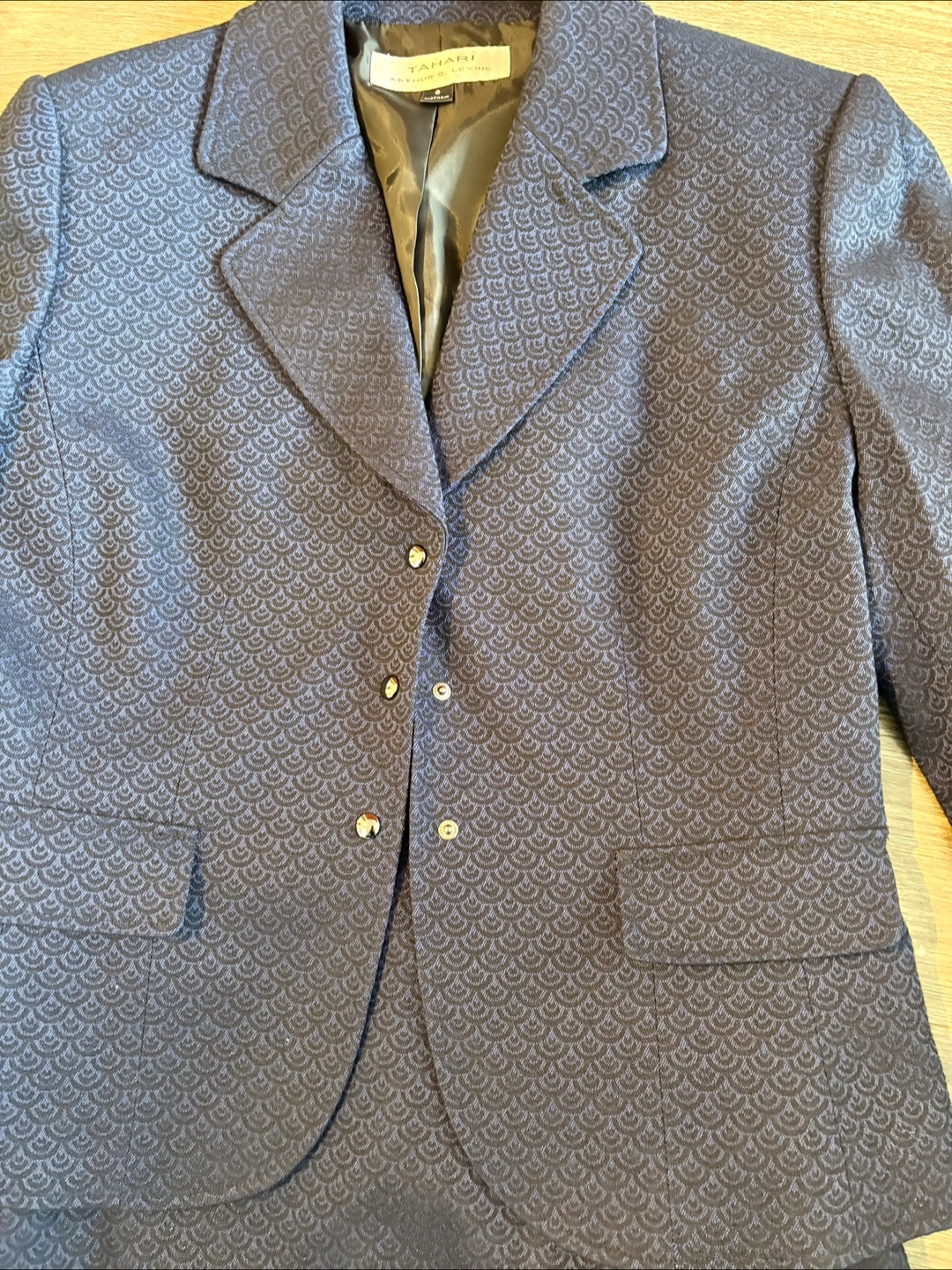 Tahari Blue Blazer & Skirt Suit - Size 8