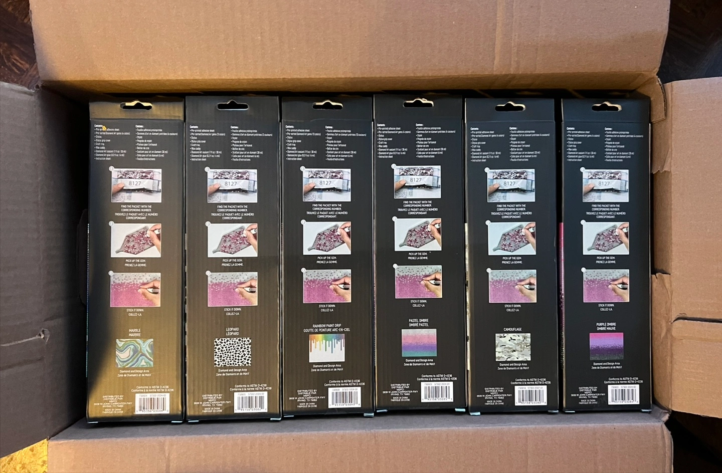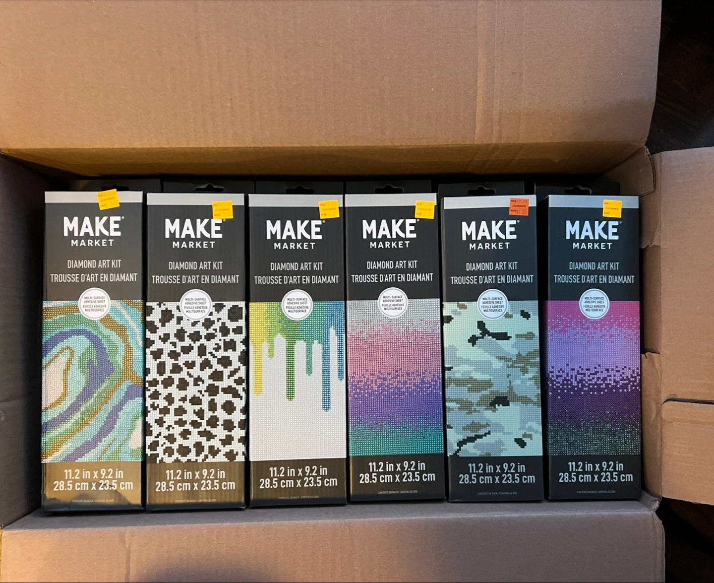 A collection of Make Market Diamond Art kits. Each box contains everything needed to create a beautiful diamond art piece. Such a relaxing hobby to unwind with after a long day.