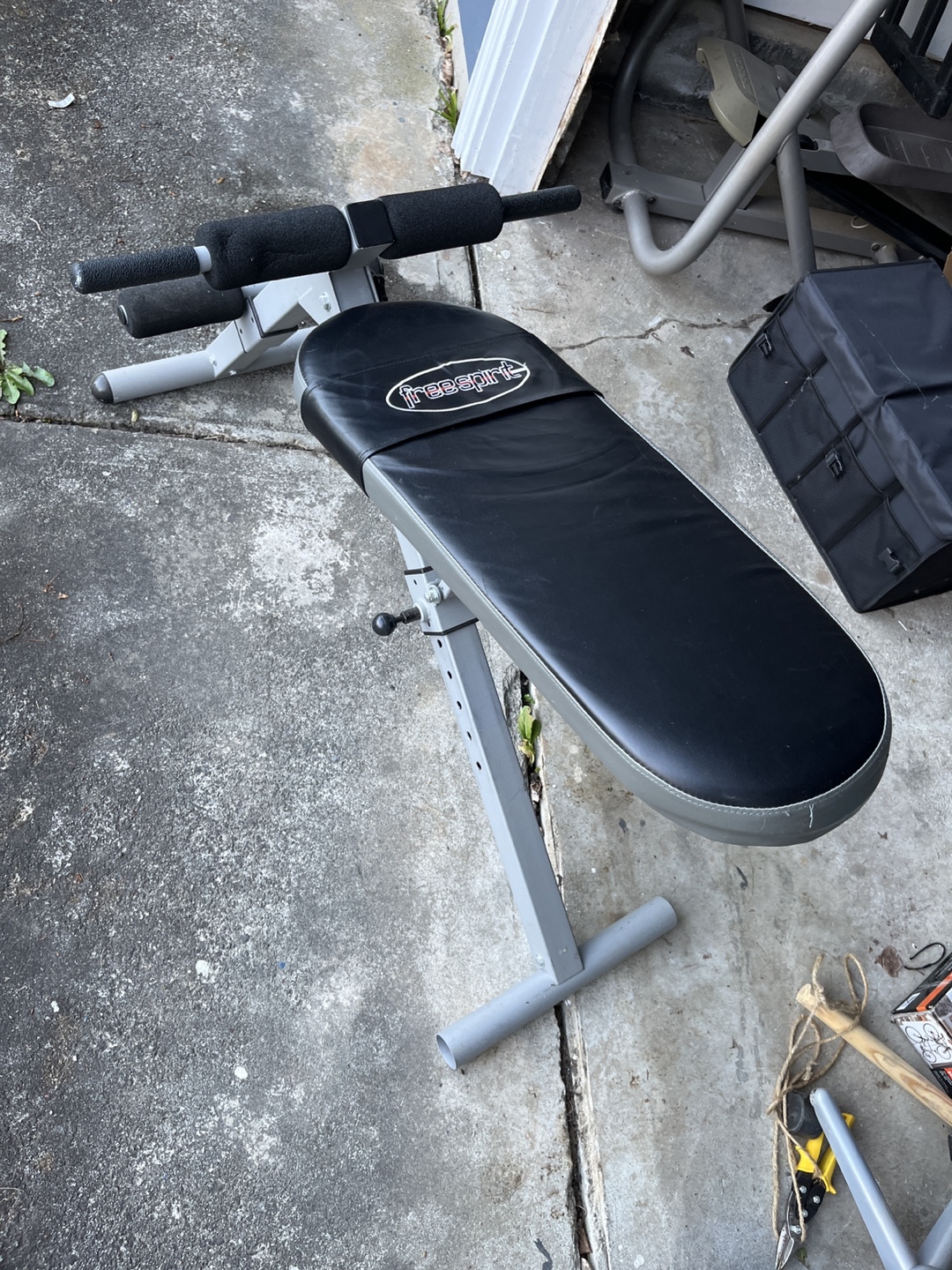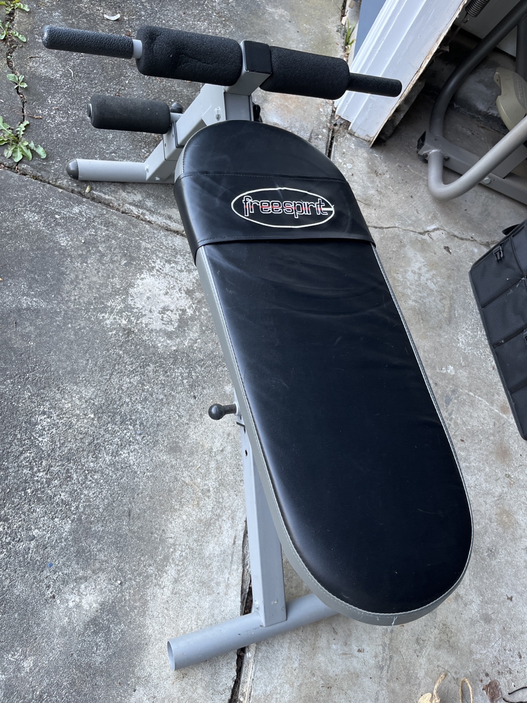 1 / 71 / 7Buy & SellFreeSpirit Workout BenchFreeSpirit Workout Bench$20Workout bench with a black cushioned top. Adjustable legs, with black foam rollers at one end. A wonderful item for you to use in your personal gym space.ConditionGoodWHERE TO MEETYork St, Maple RidgeView MapSELLERverifiedJeanW Maple Ridge1244 reviews0 chats·0 favorites·18 viewsSEND CHAT TO SELLERHi Jean! I’m interested in your listing.Hi Jean! I’m interested in your listing.Get the Karrot app to chatSign In to chat