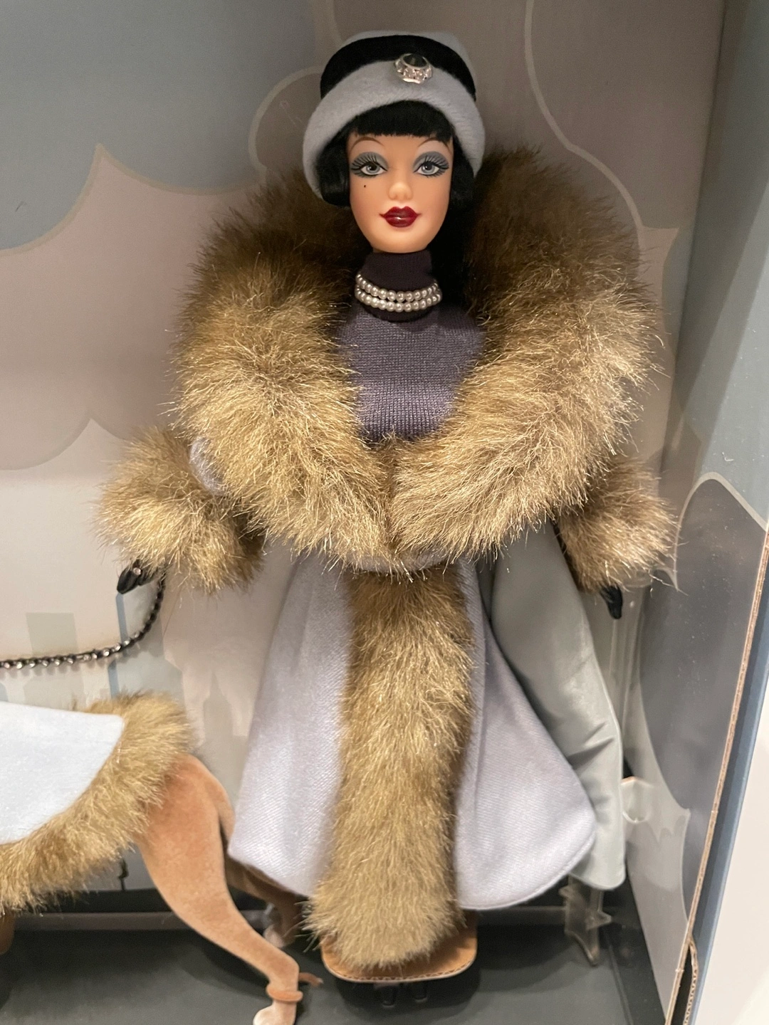 Doll in a box with a matching dog. Includes a dress and accessories. It is perfect for those who appreciate collecting unique dolls and enjoying nostalgic moments.