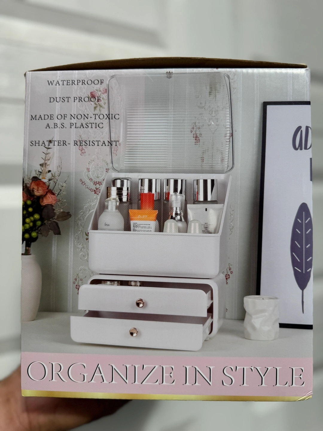 Stylish and practical beauty organizer made from non-toxic A.B.S. plastic. Perfect for keeping all your skincare and makeup essentials neat and protected.