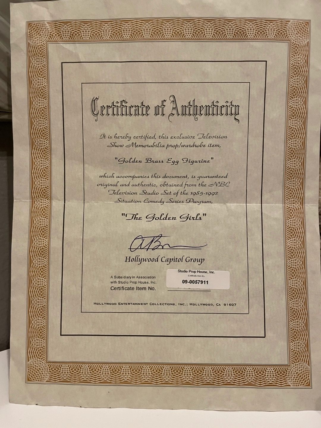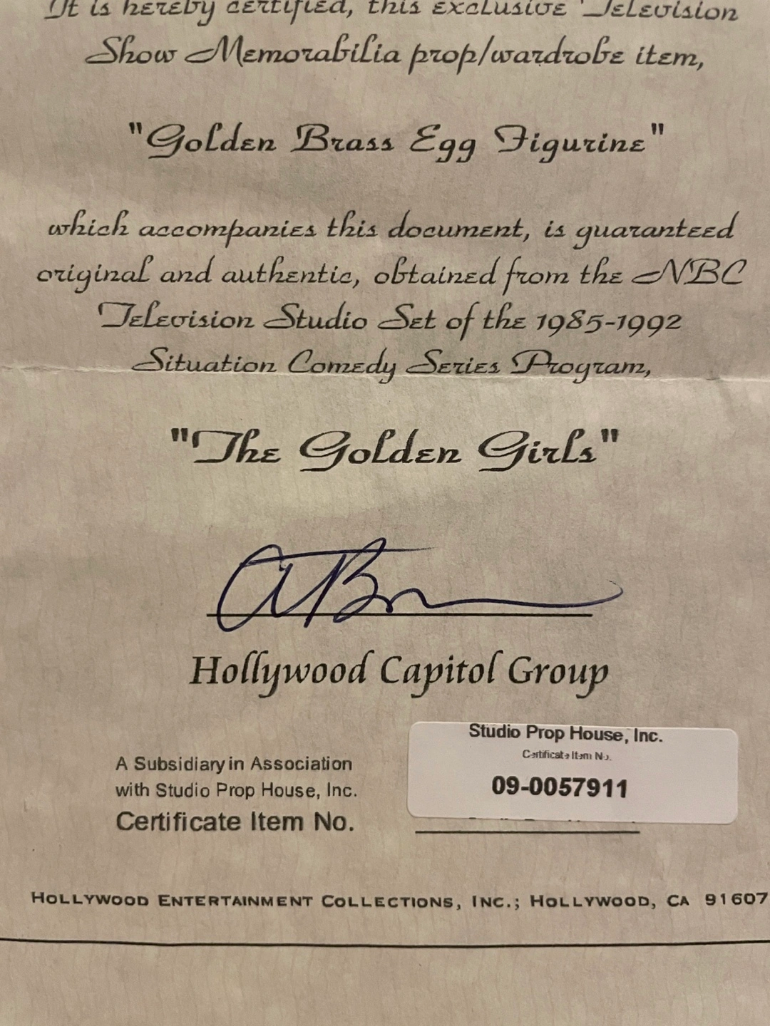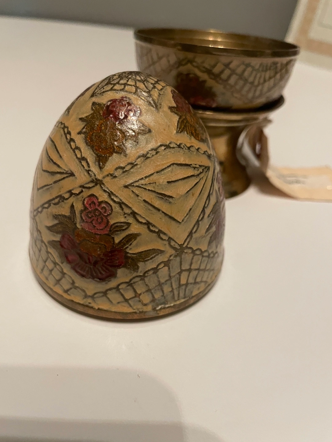 From the famous 80’s TV show The Golden Girls. Figurine of an egg with a floral pattern, on a stand. The egg appears to be in two pieces, with the top half removable. Comes with a certificate of authenticity. This decorative item could serve as a charming trinket holder.