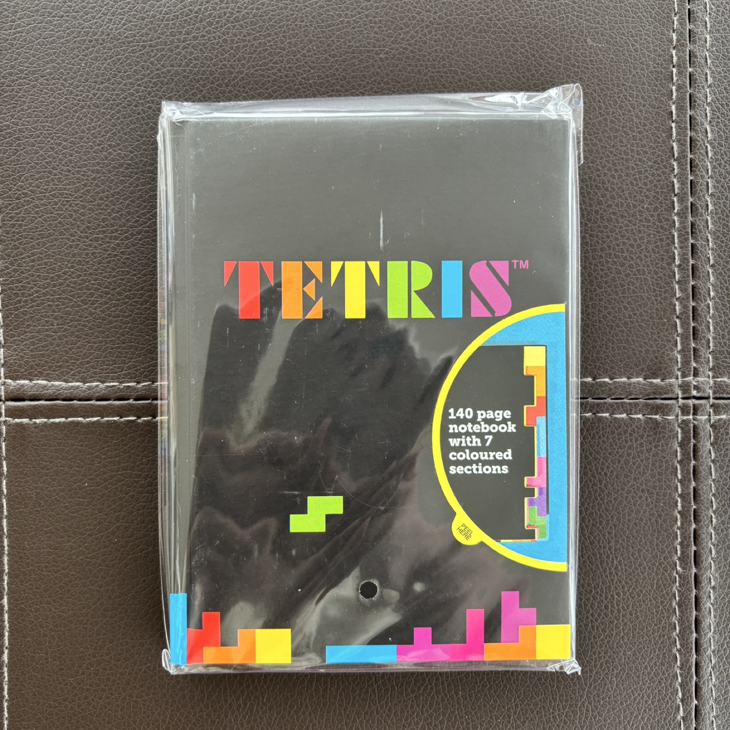Notebook featuring Tetris graphics. 140 pages with 7 colored sections. Never been opened.