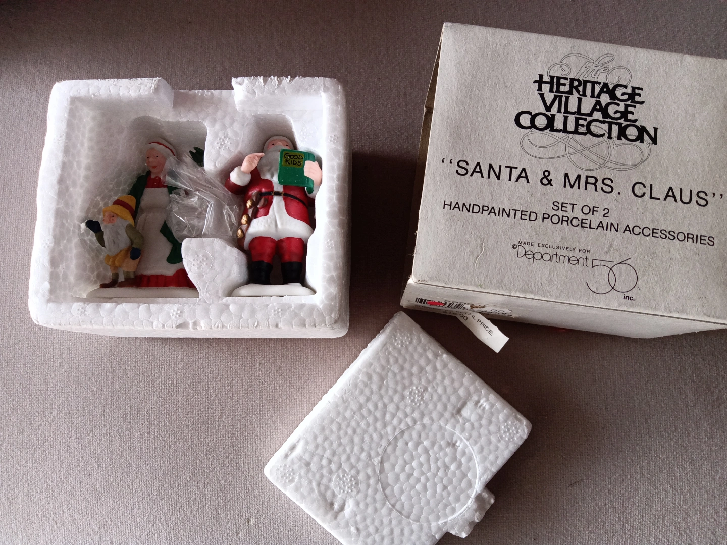 Department 56 figurines are still safely stored in a styrofoam holder. Never set out. The set includes Santa and Mrs. Claus, and a little helper. Adding these to your village or collection would make for a wonderful display. Pickup in Maspeth Queens.