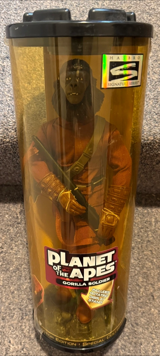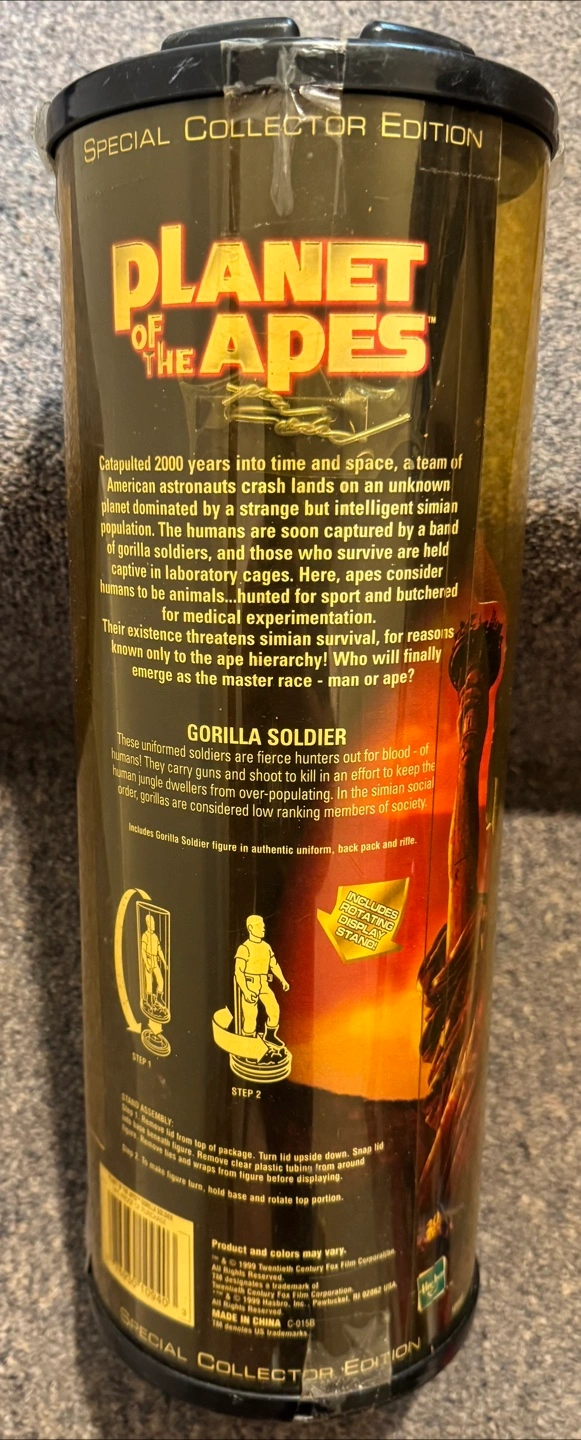 Vintage 1999 Planet Of The Apes Action figure of a Gorilla Soldier. Comes in a cylindrical package. It may be just what you need for a relaxing afternoon.