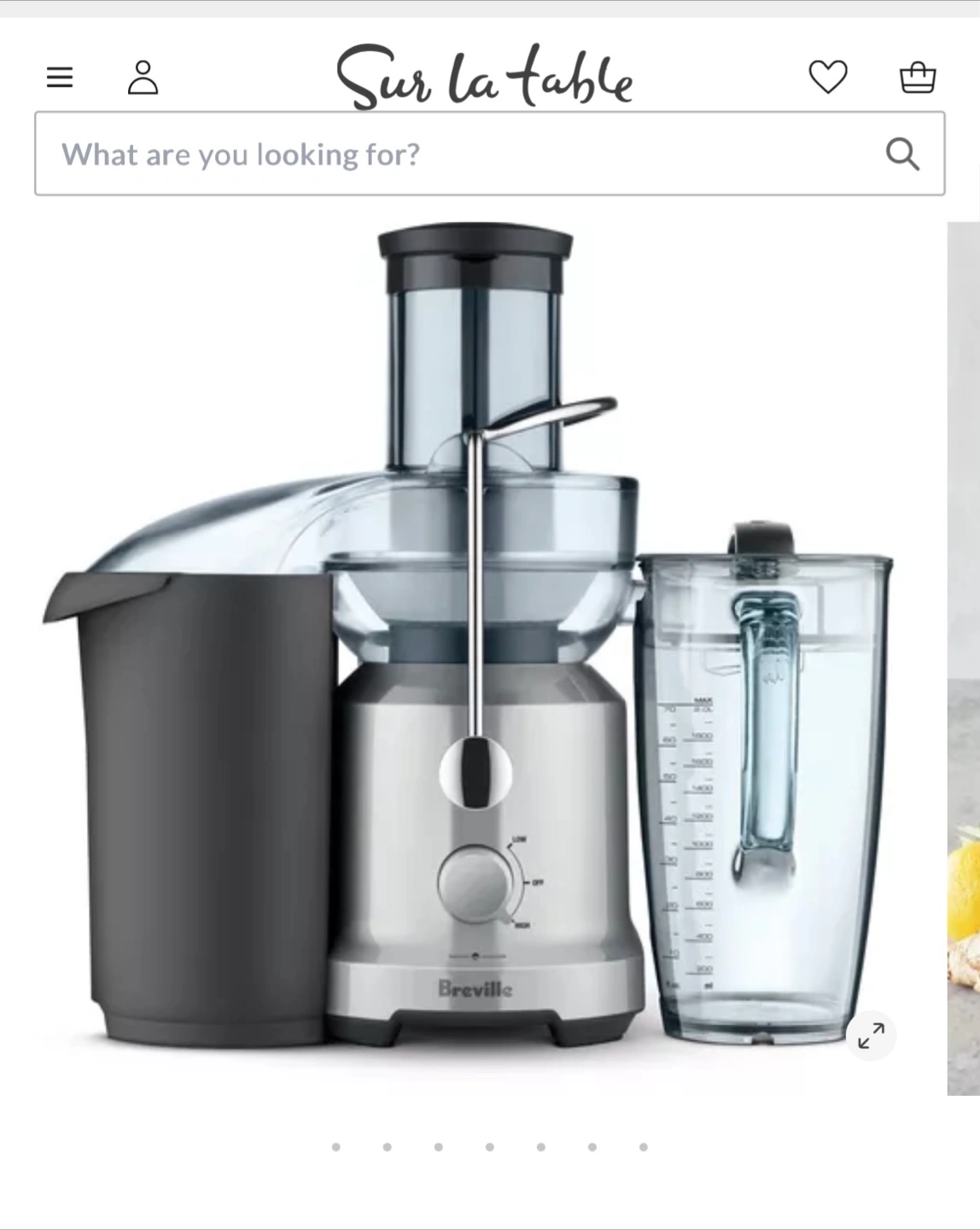 Juicer with a stainless steel finish. Includes a clear pitcher with measurements. Comes with a black pulp container. Make yourself a refreshing drink to start the day off right.