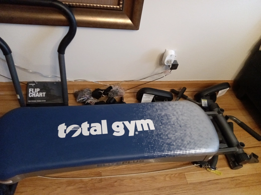 A hardly used, in almost new condition blue and gray Total Gym exercise equipment. Features a number of additional add on workout pieces & a flip chart showing how to use, for beginner , intermediate & advanced. It's been folded & stored under bed, but can also be rolled from room to room or stored in a closet. Pickup is in Maspeth Queens, blks from LIE. Come & get it to start your own personal gym, perfect for fall & winter use. We are a smoke & pet free home.
