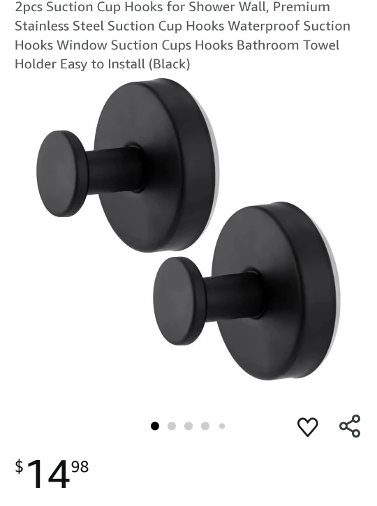 These suction cup hooks are perfect for adding a touch of convenience to your shower wall, crafted from premium stainless steel and designed to be waterproof. These hooks feature strong suction cups, making them ideal for windows, bathrooms, or any smooth surface requiring a towel holder and are easy to install without tools. These hooks are new, ready for a new home.