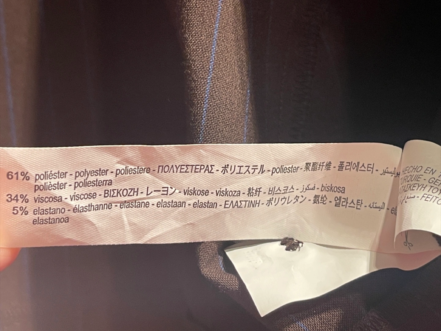 • 61% polyester, 34% viscose, 5% elastane
