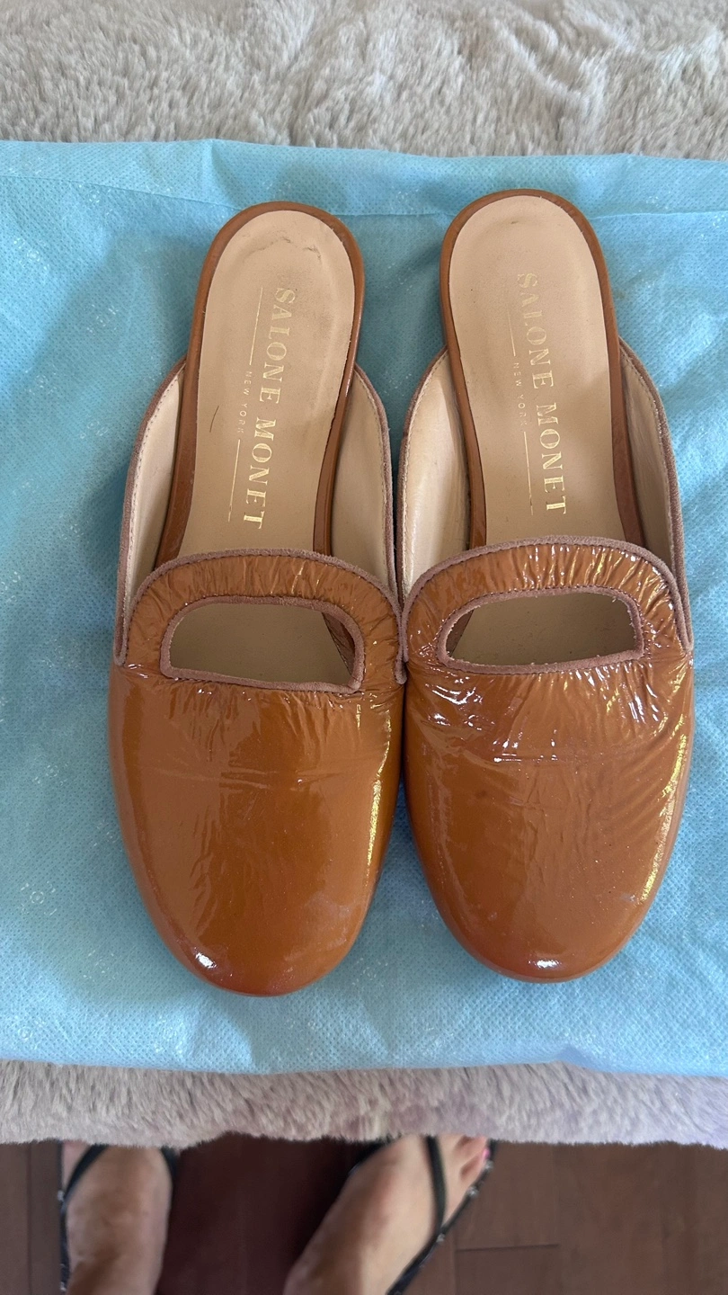 Women's Brown Patent Leather Mules