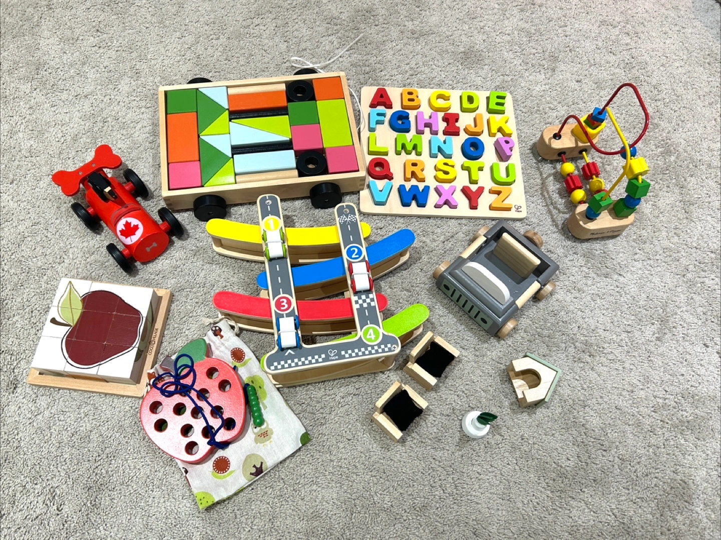 [Hape Wooden alphabet blocks, puzzle, educational toy]