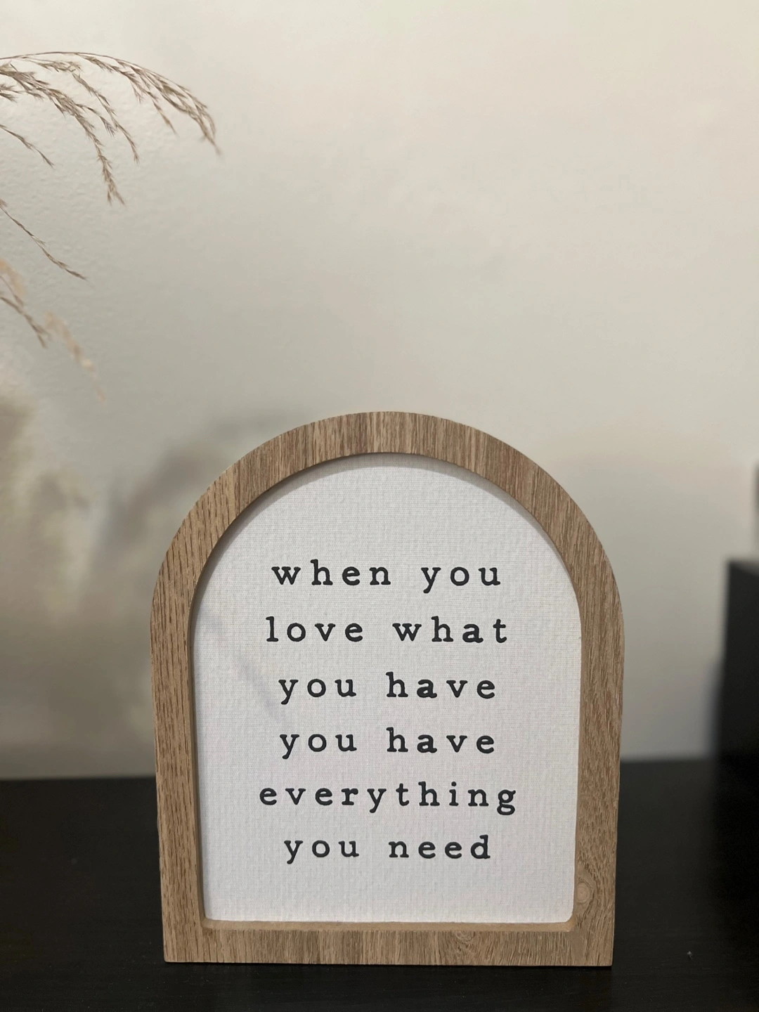 The sign features a lovely quote in black text, perfect for displaying in your home. The sign has a wooden frame surrounding the quote. It is ideal to give as a gift or to use as a decoration to brighten up your space.