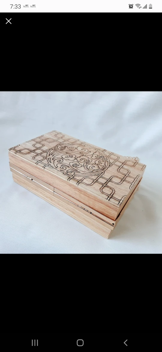 Size 4.25" x 7" x 2.5" natural wood finish.