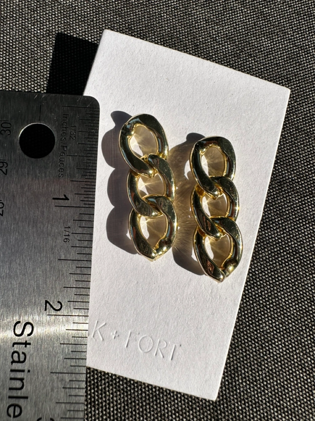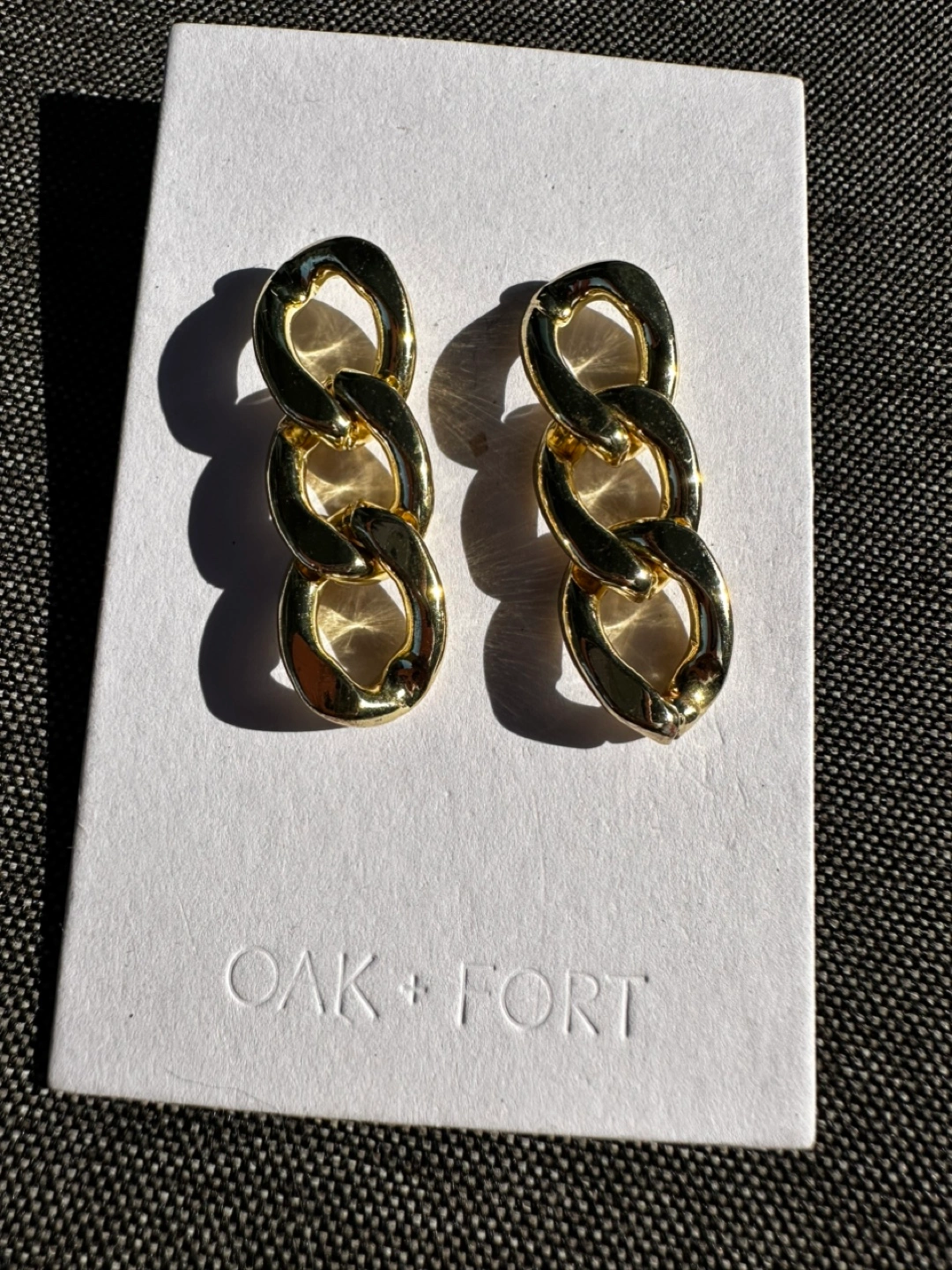 Earrings with a chain design. They appear to be gold. A great accessory to brighten your look and your day.